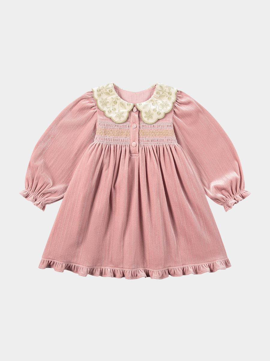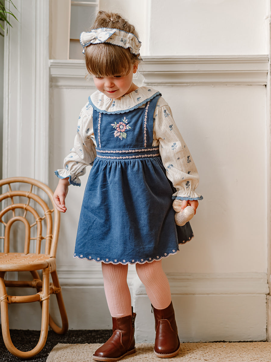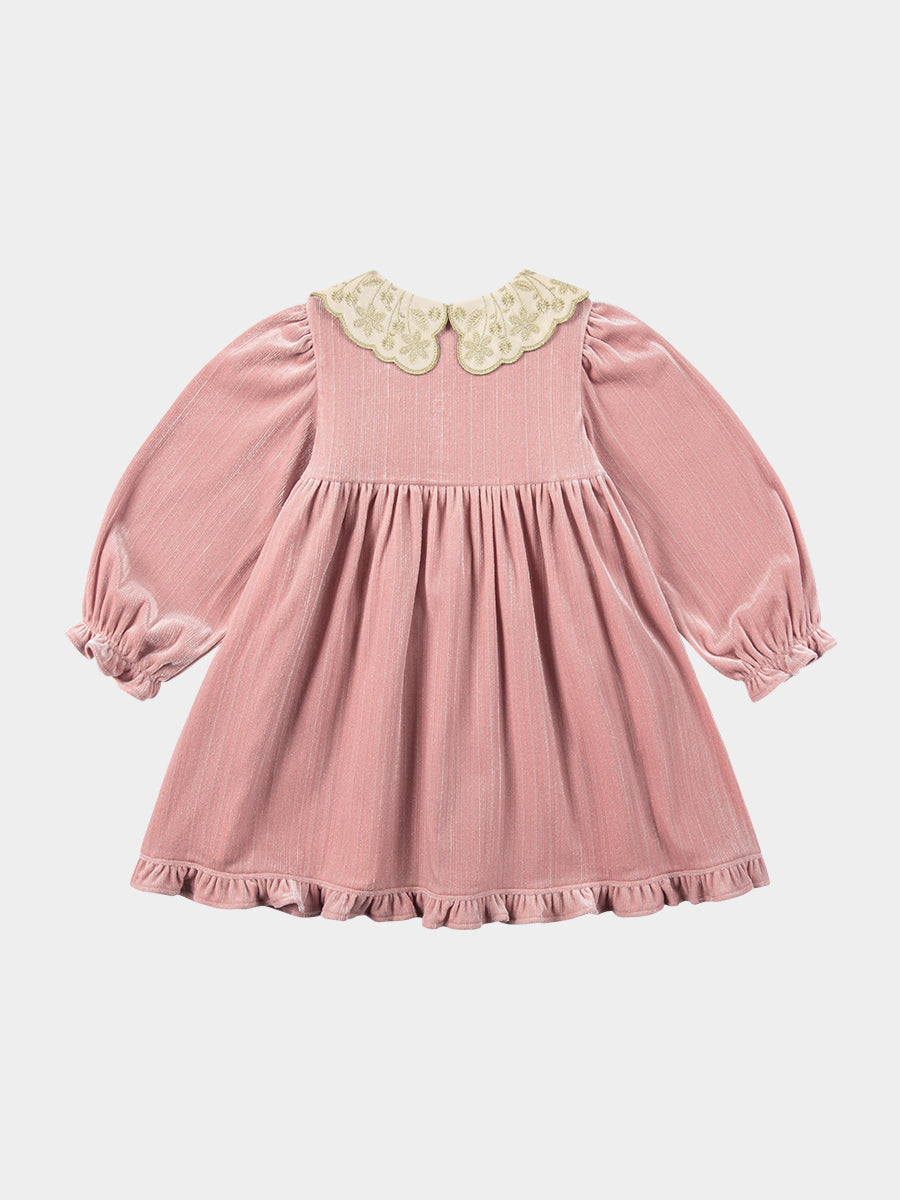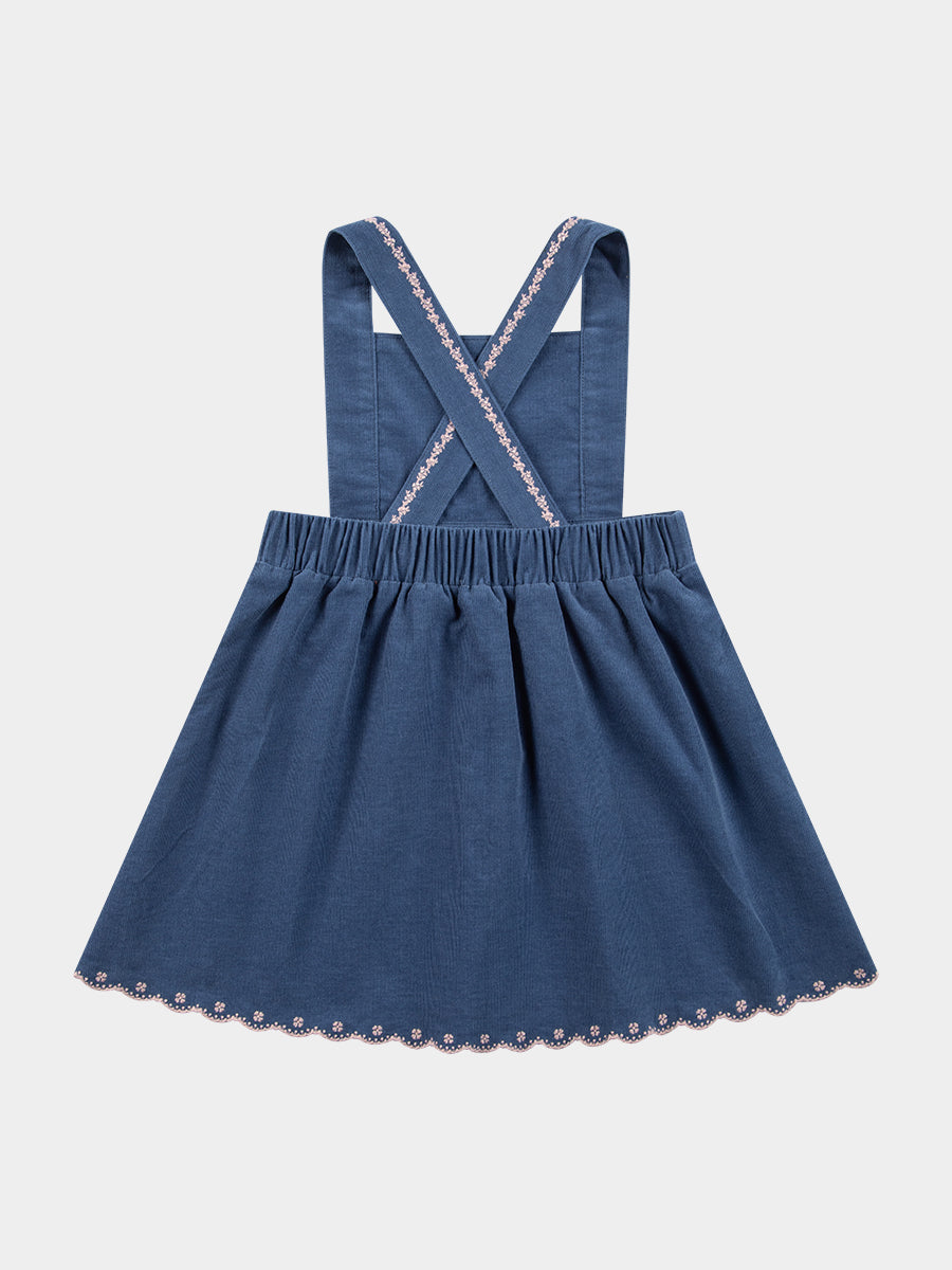 Kalmia Embroidered Corduroy Overall Dress, Misty Pink