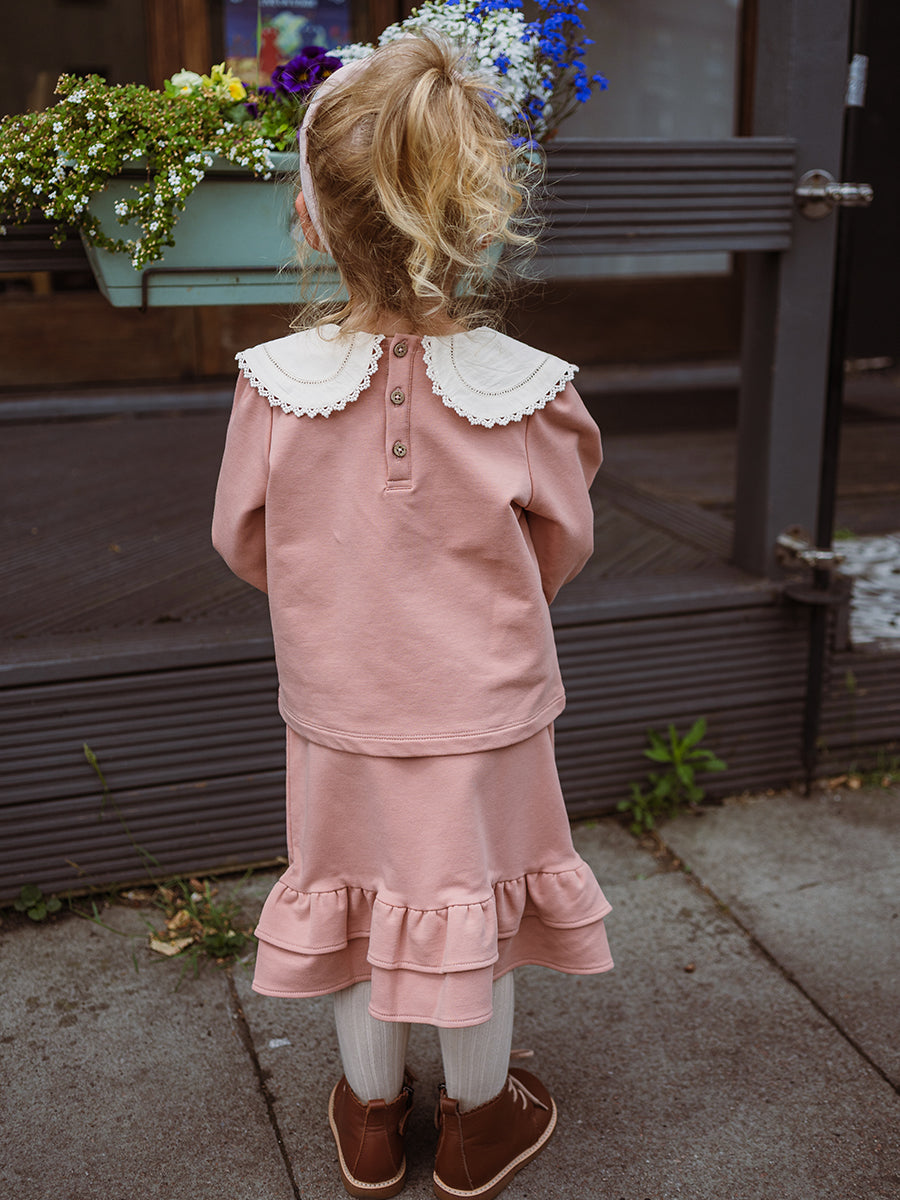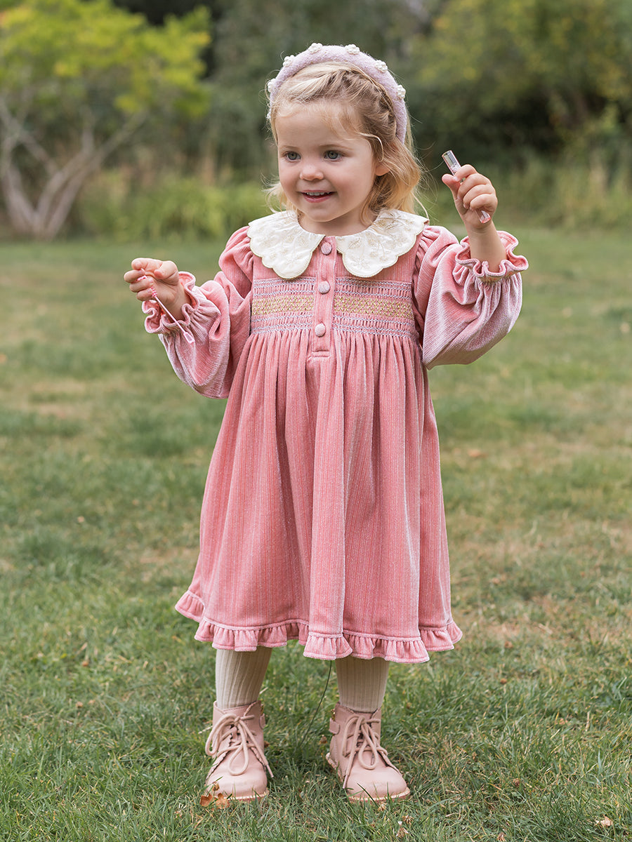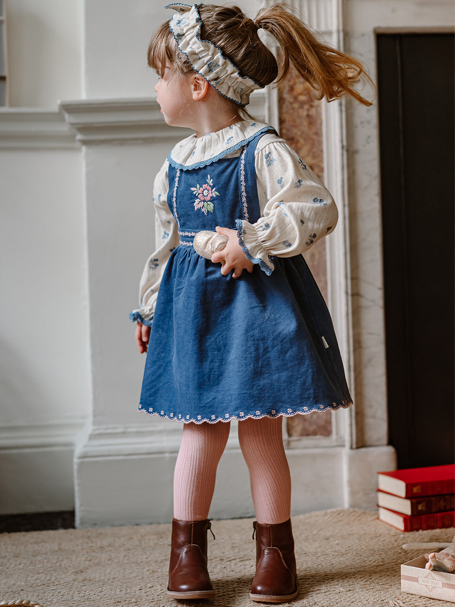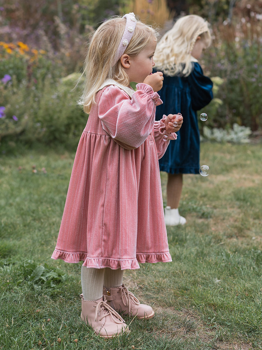 Kalmia Embroidered Corduroy Overall Dress, Misty Pink