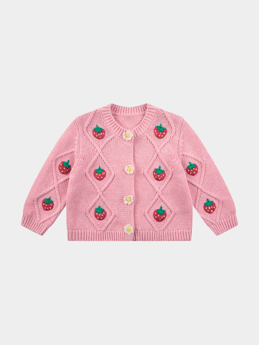 Strawberry Hand-Embroidered Cardigan, Princess Pink
