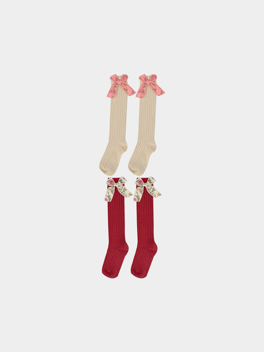 Noelle Bow Socks, Princess Red & Crème Brulee