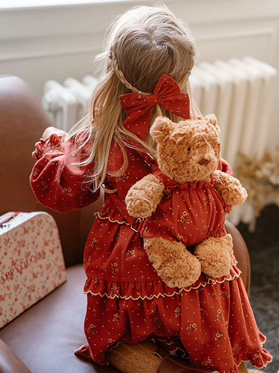 Teddy Bear Overall Shorts, Wildflower Polka, Burgundy