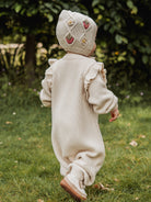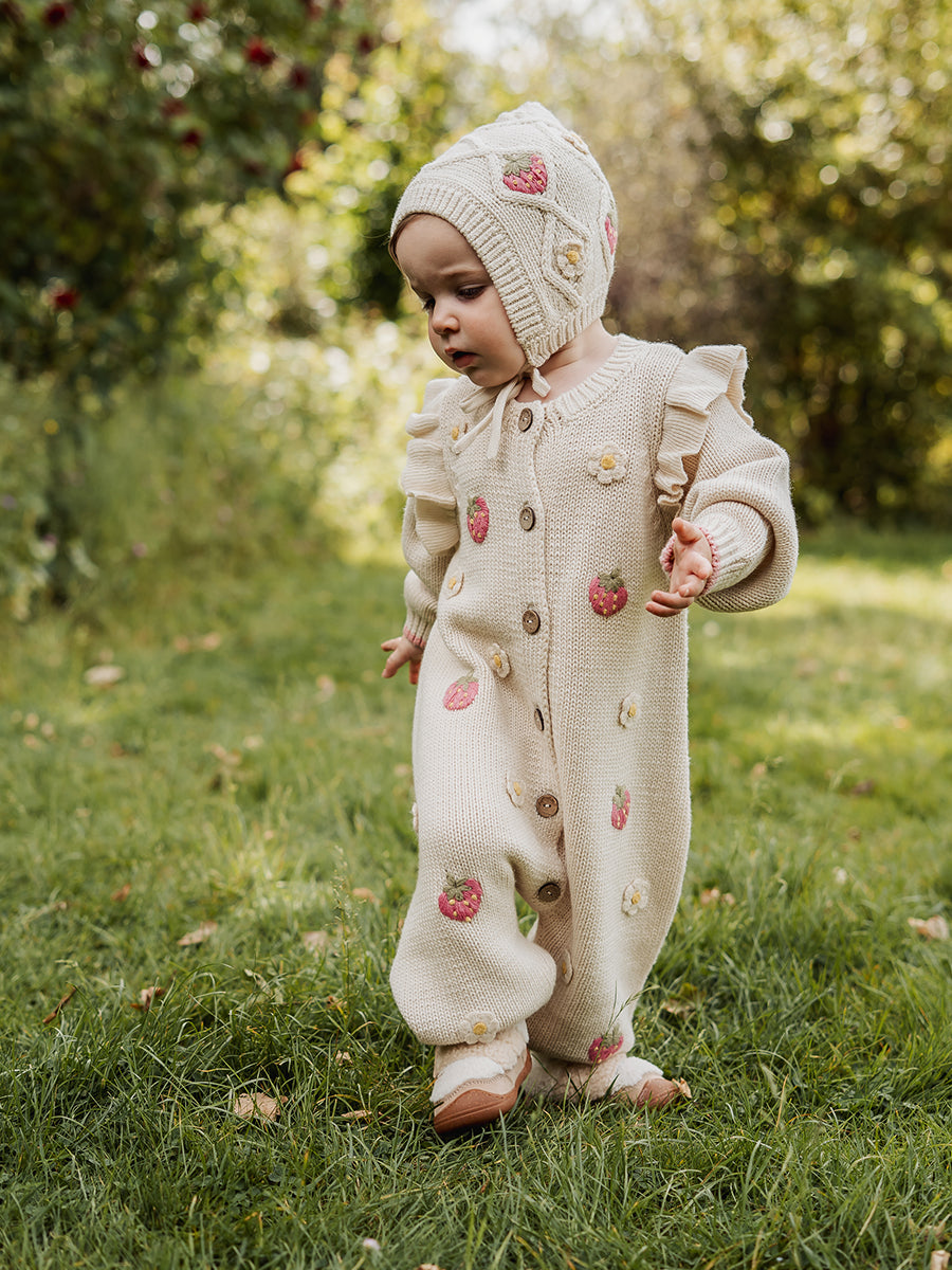 Strawberry Hand-Embroidered Romper, Crème Brulee