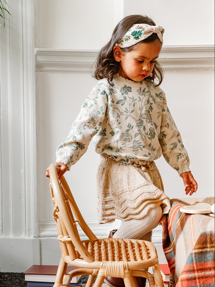 Strawberry Hand-Embroidered Cardigan, Crème Brulee
