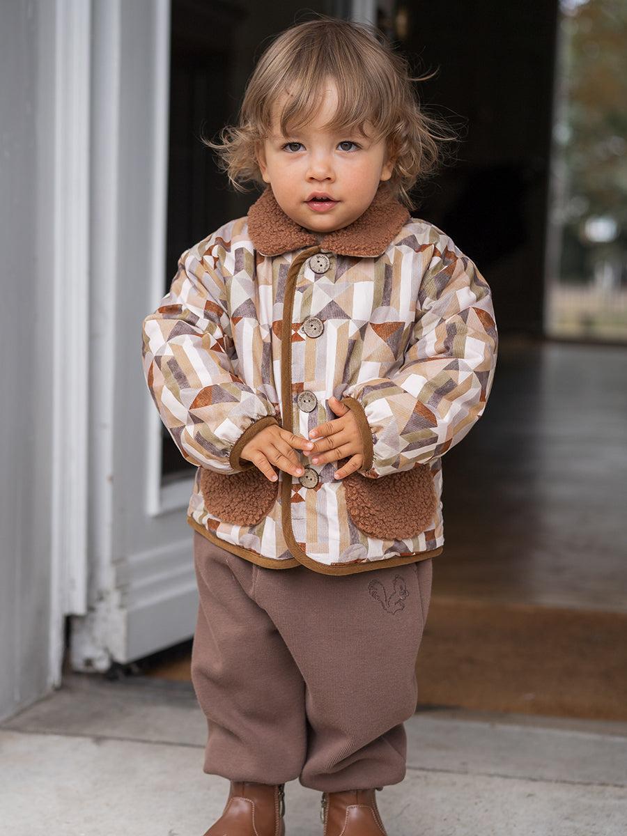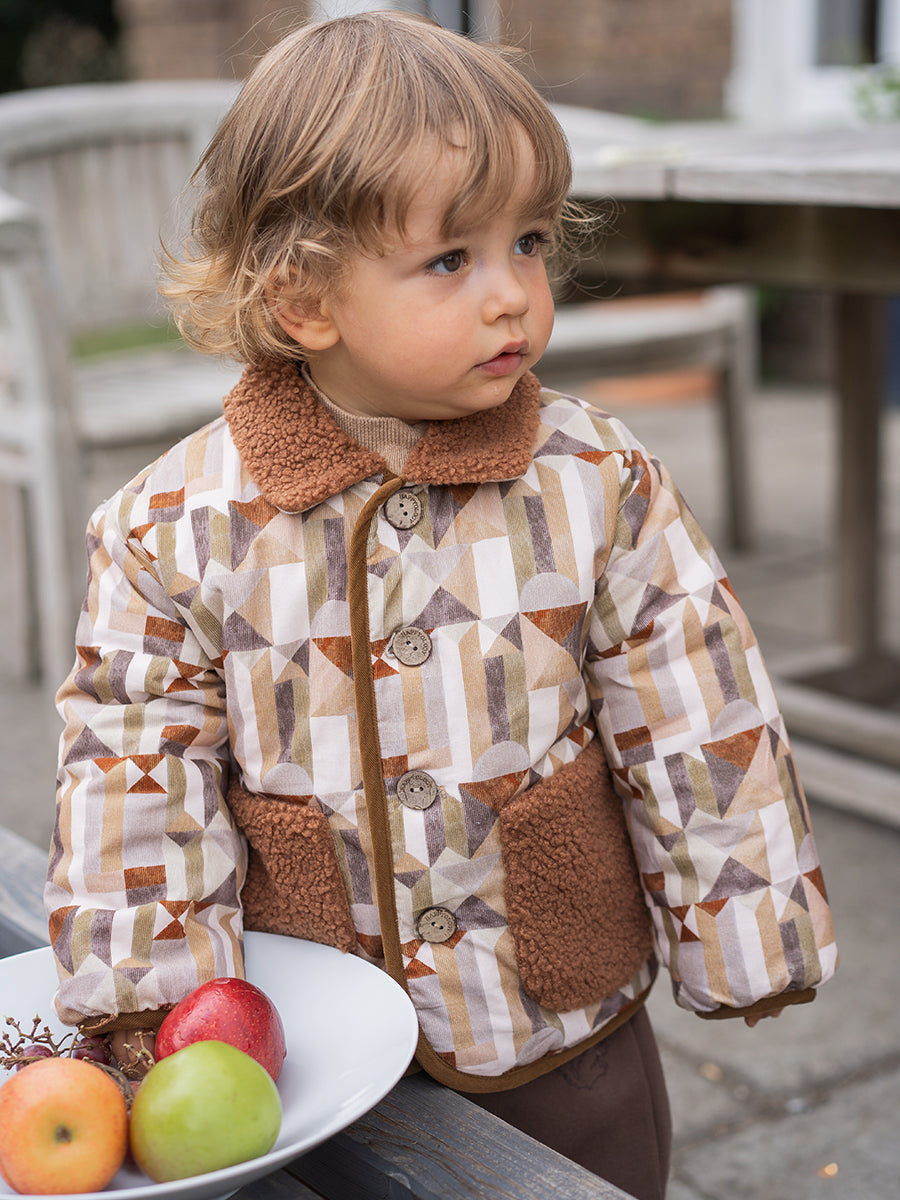 Noah Padded Coat, Colourful Geo, Sepia