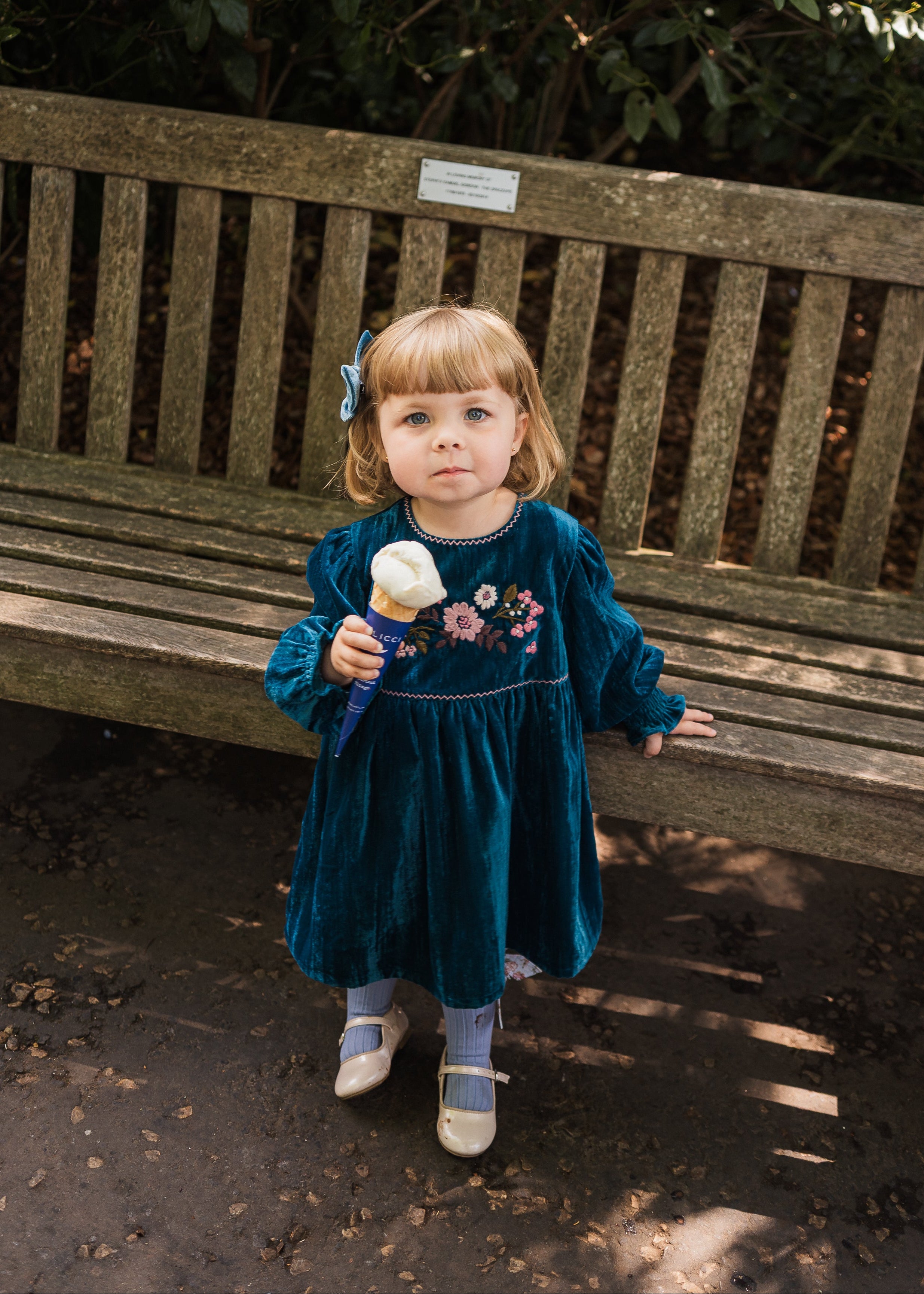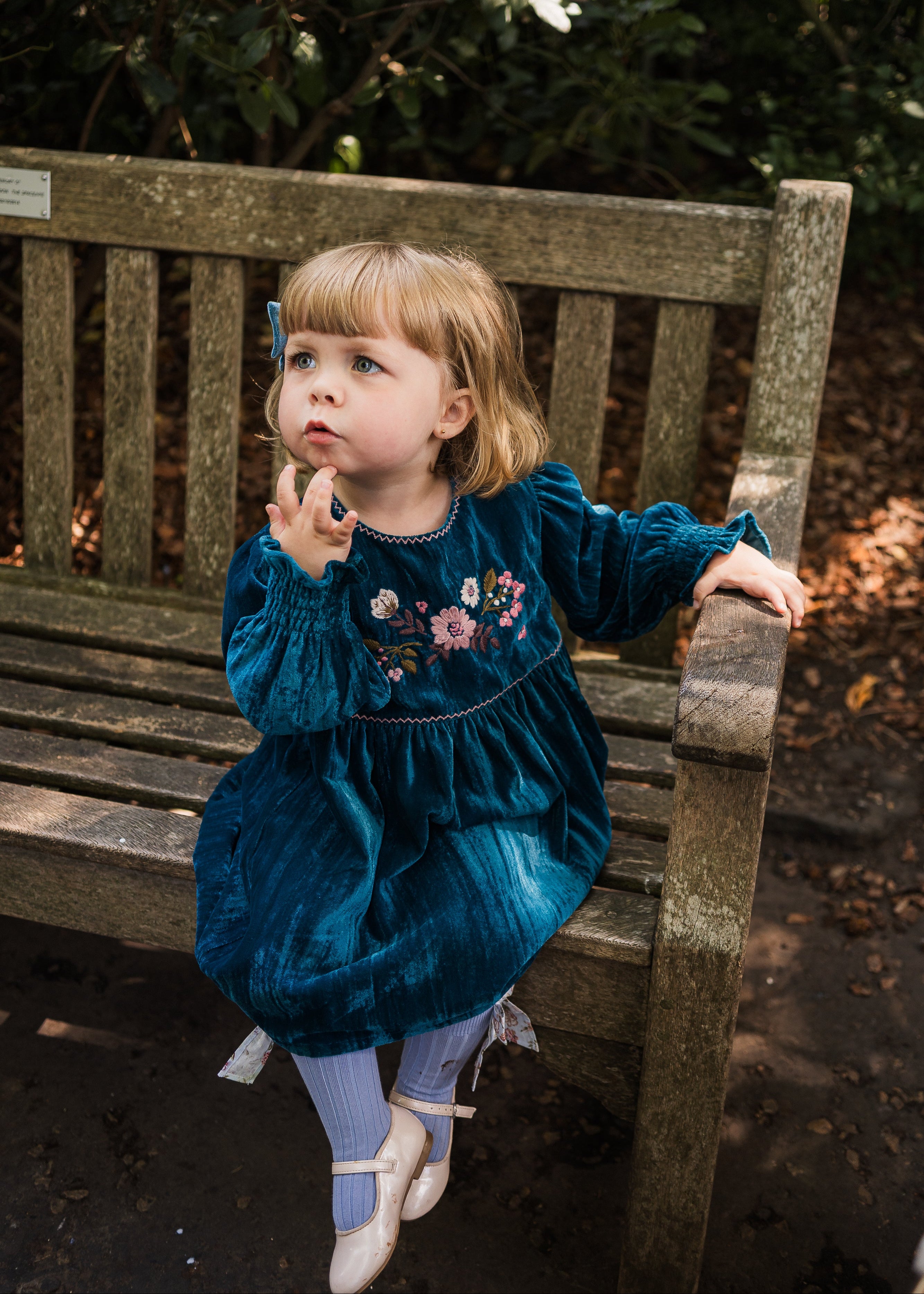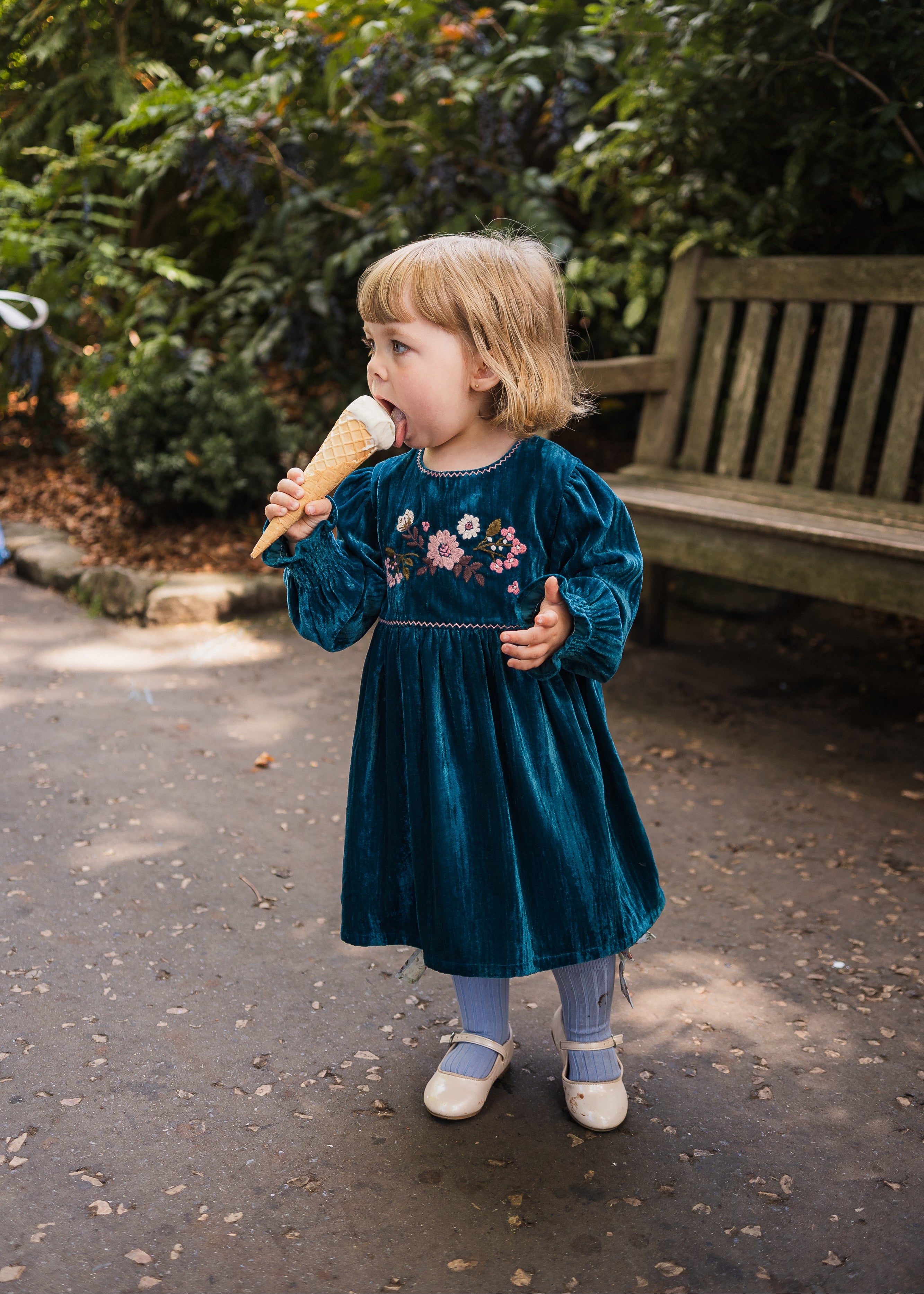 Abigail Hand-Smocked Dress, Wisteria Garden, Blue
