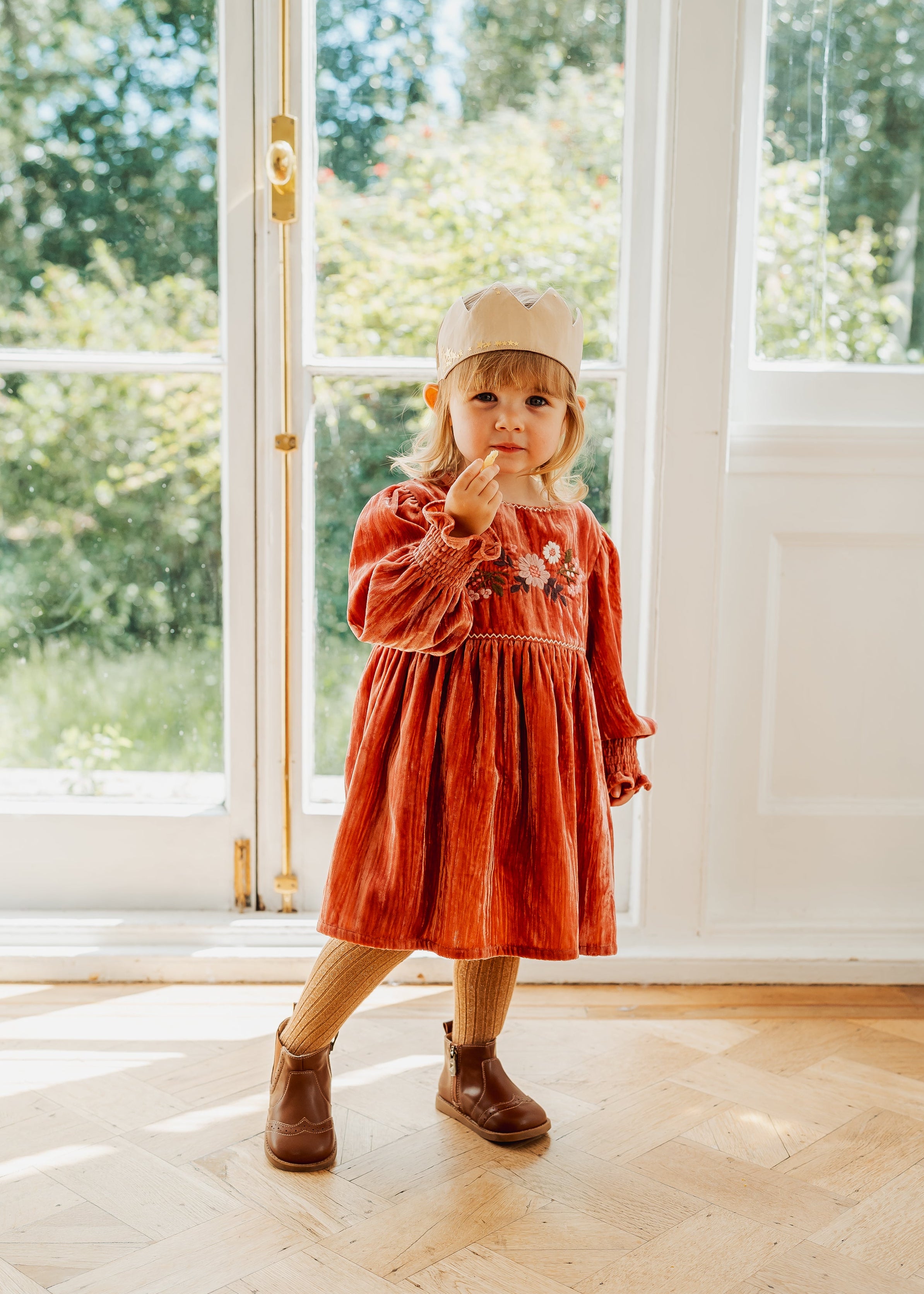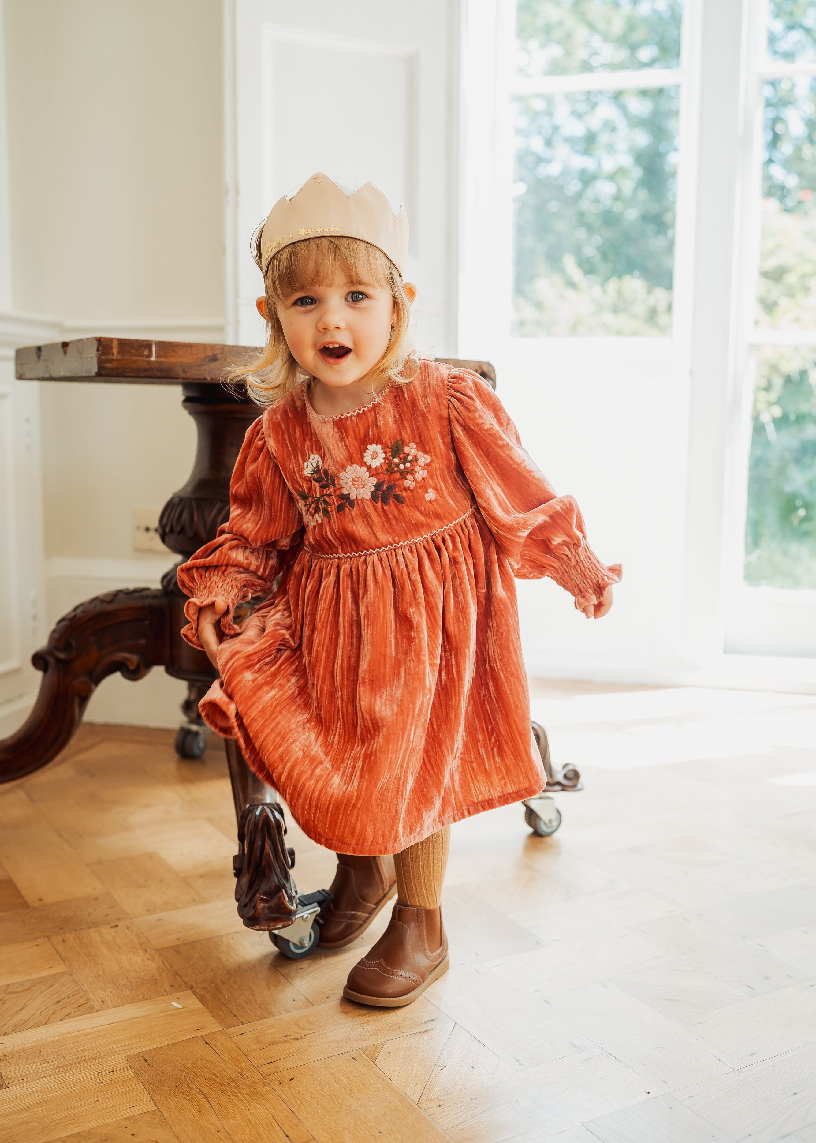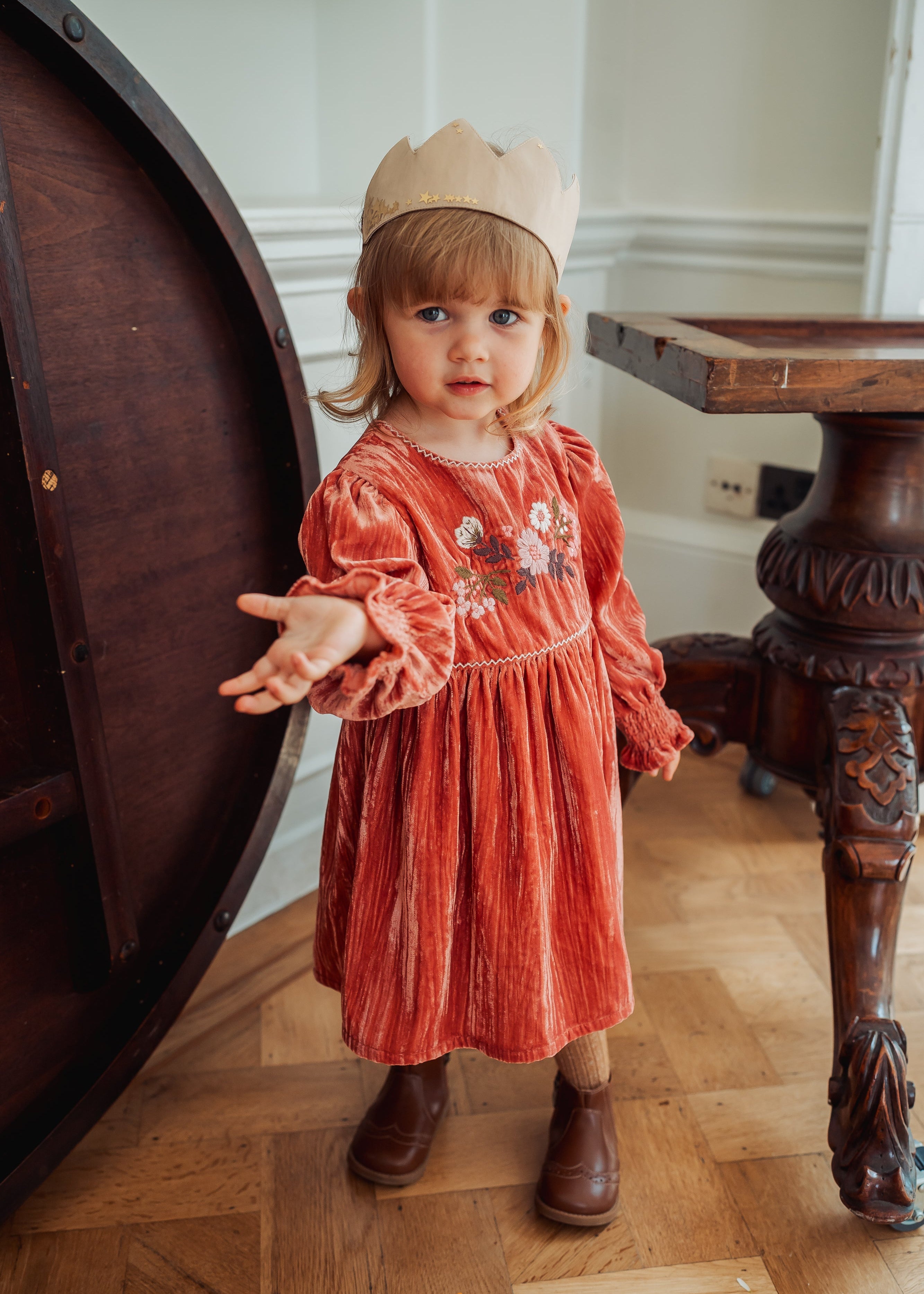 Laila Embroidered Dress, Strawberry Flower Field, Blush