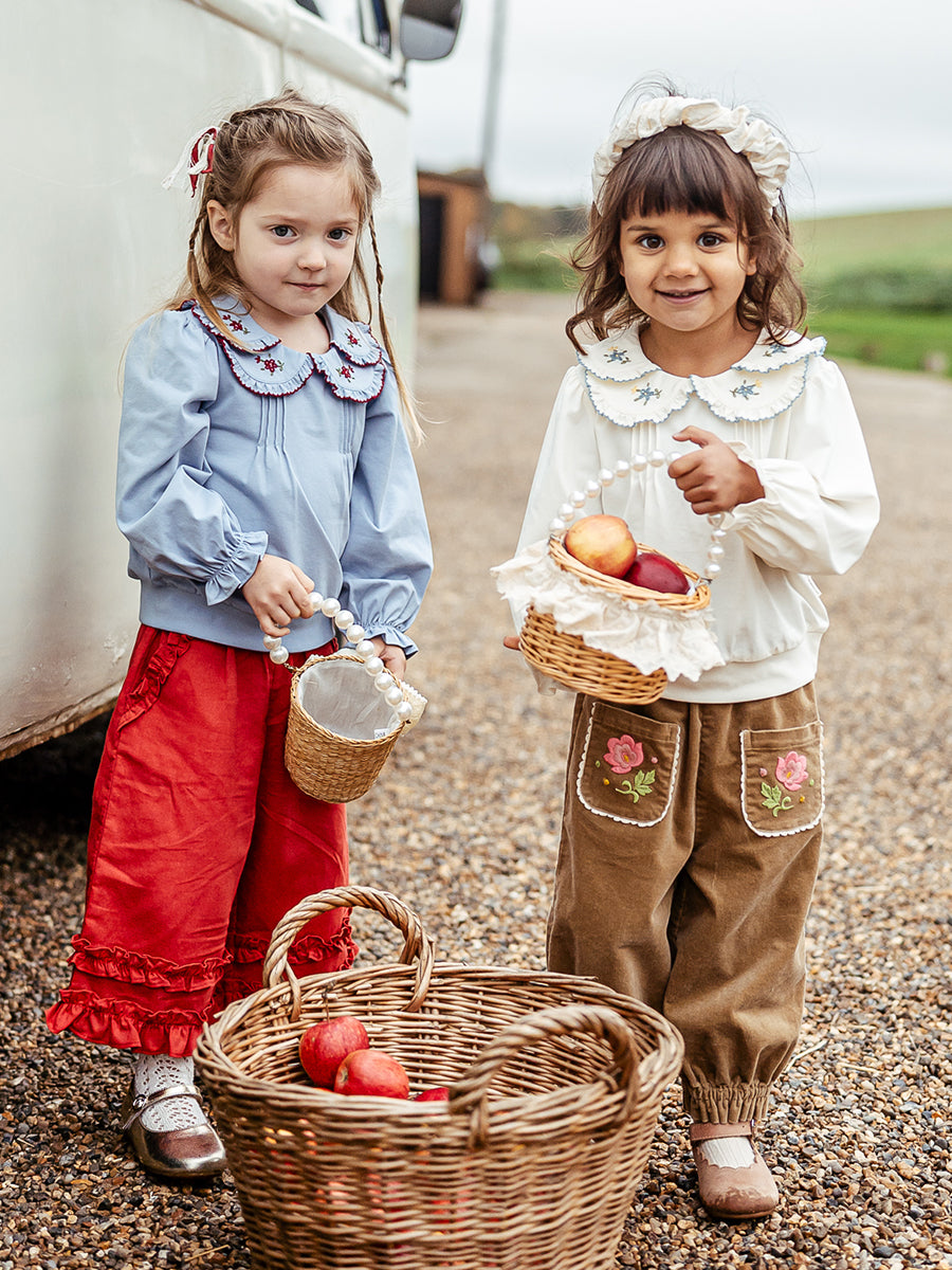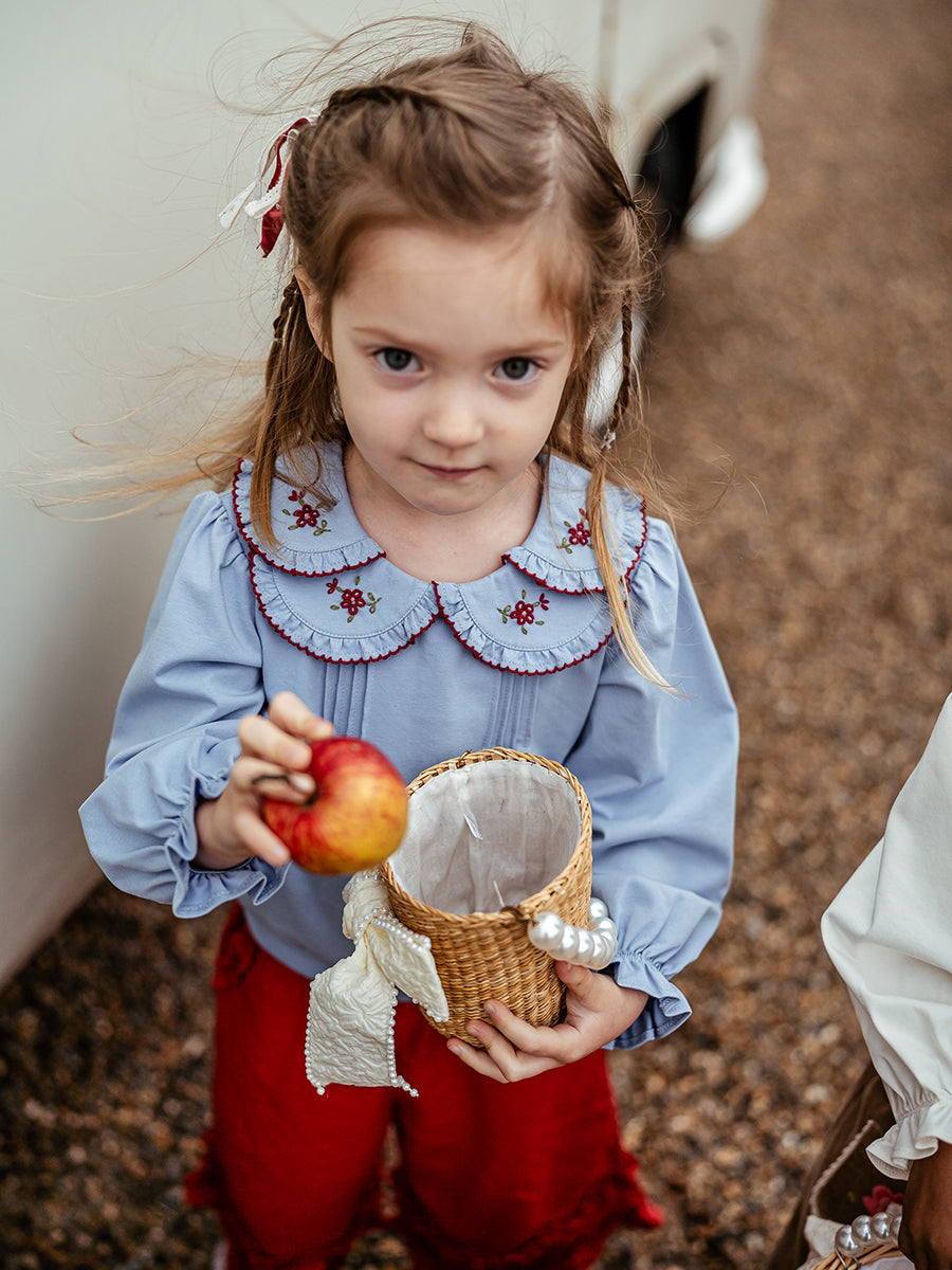 Siena Hand-Embroidered Blouse, Ocean Blue