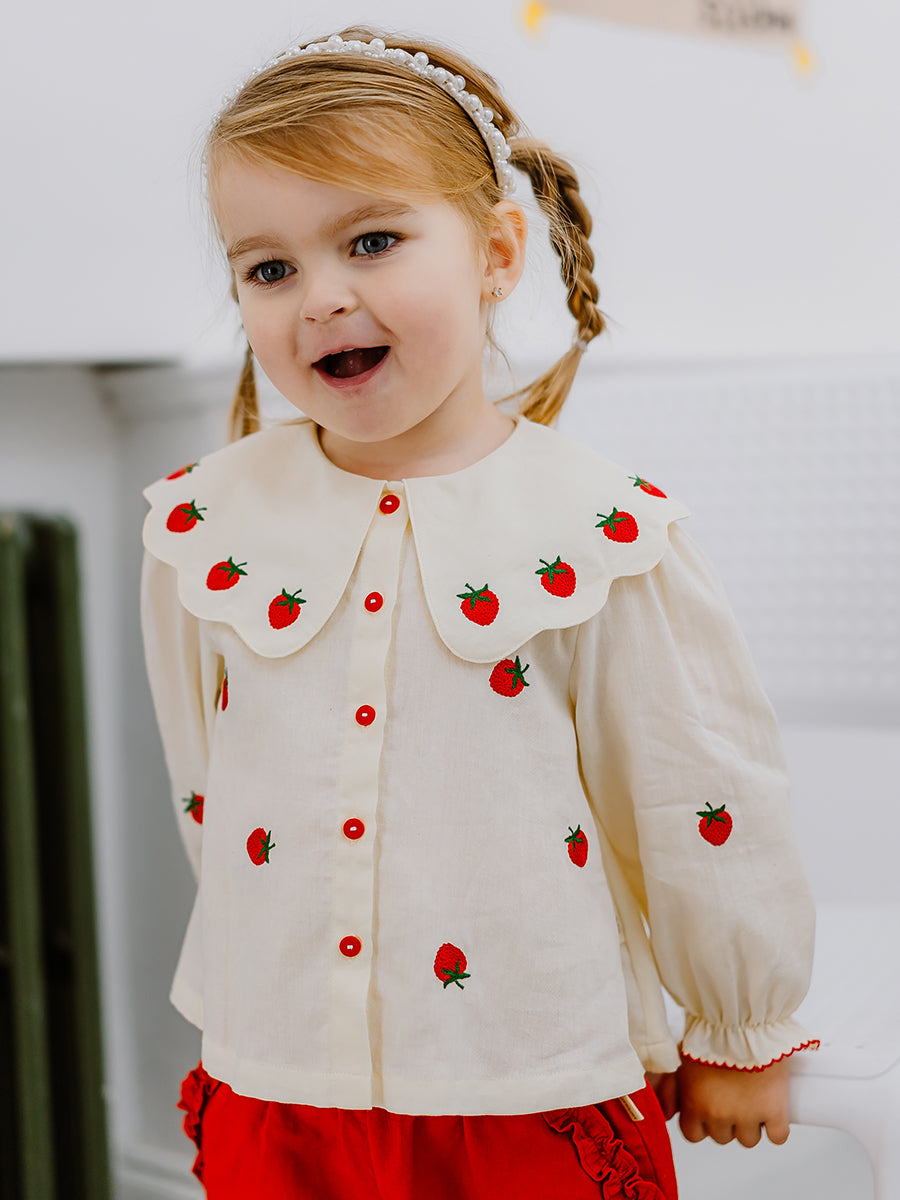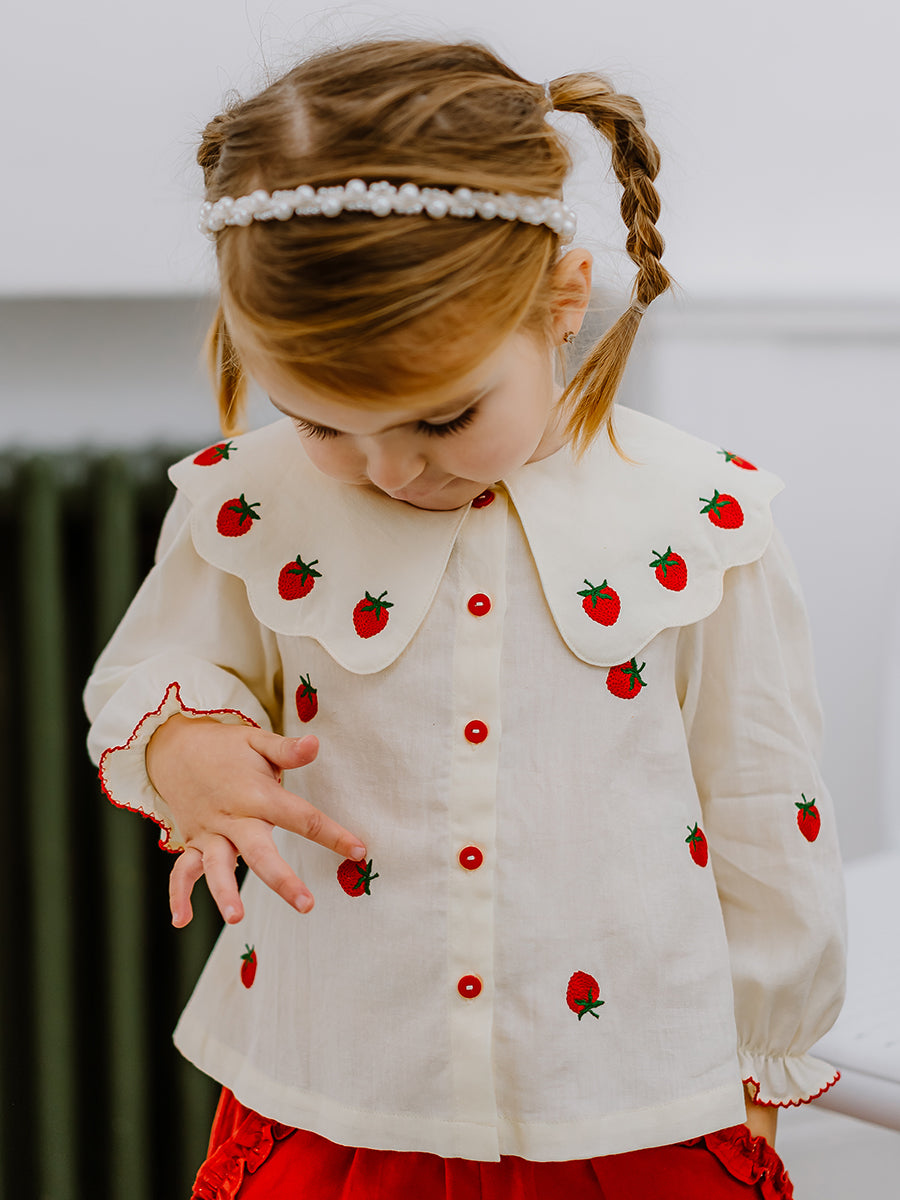 Siena Hand-Embroidered Blouse, Almond White