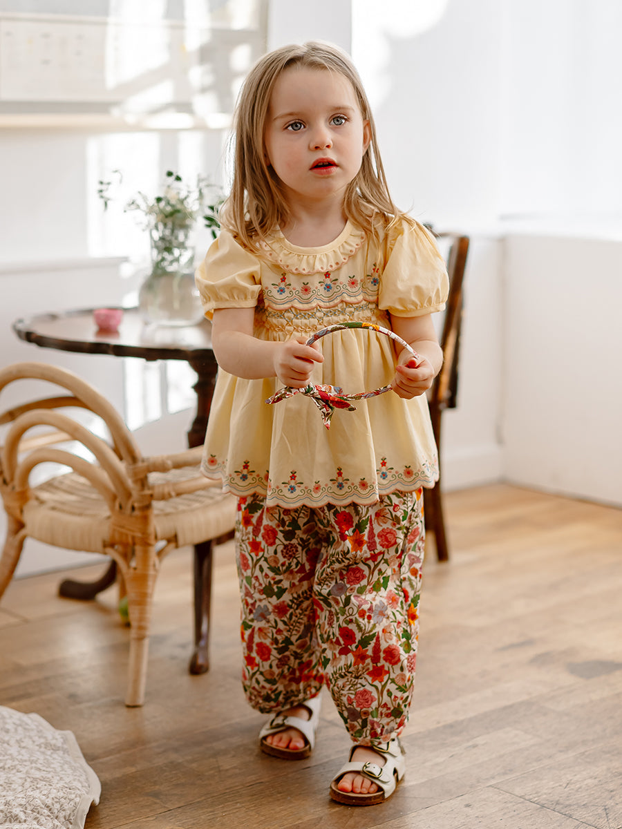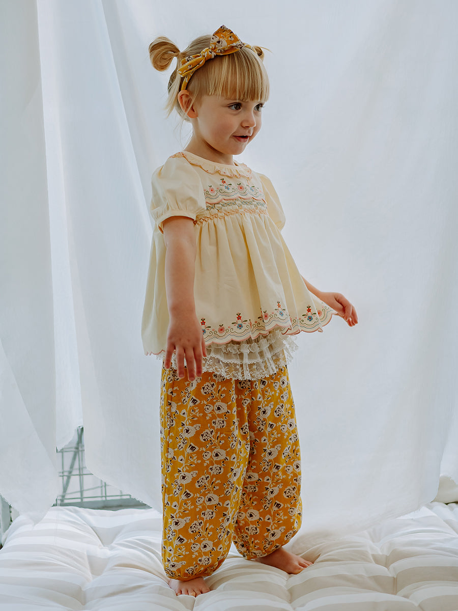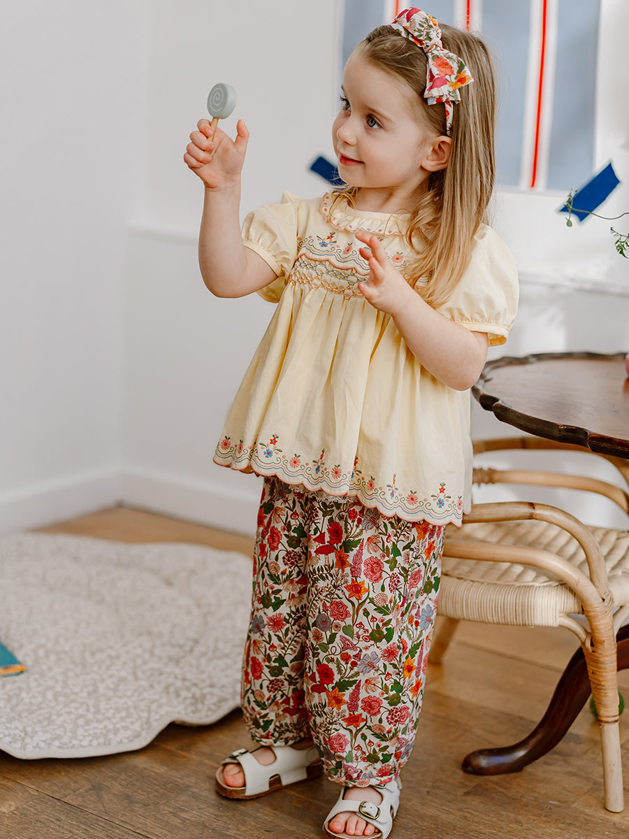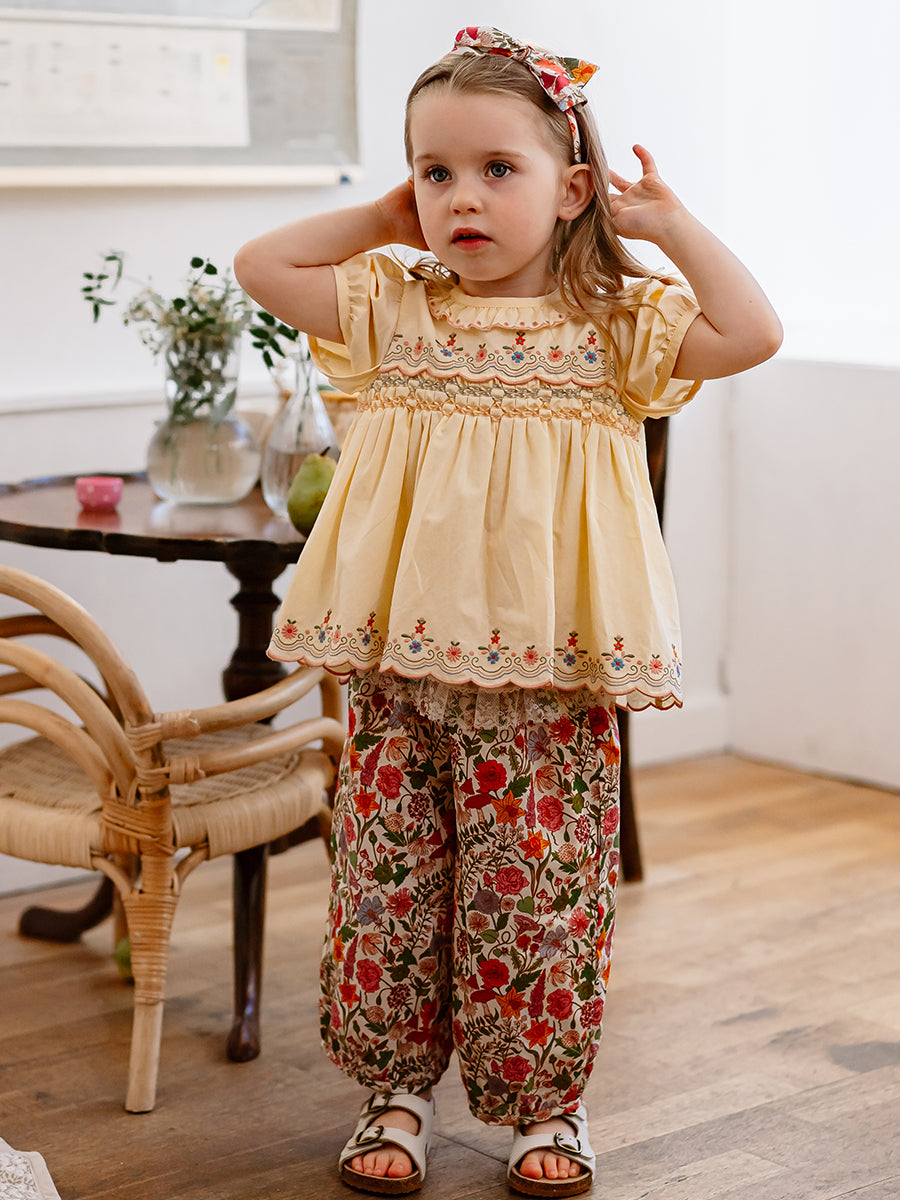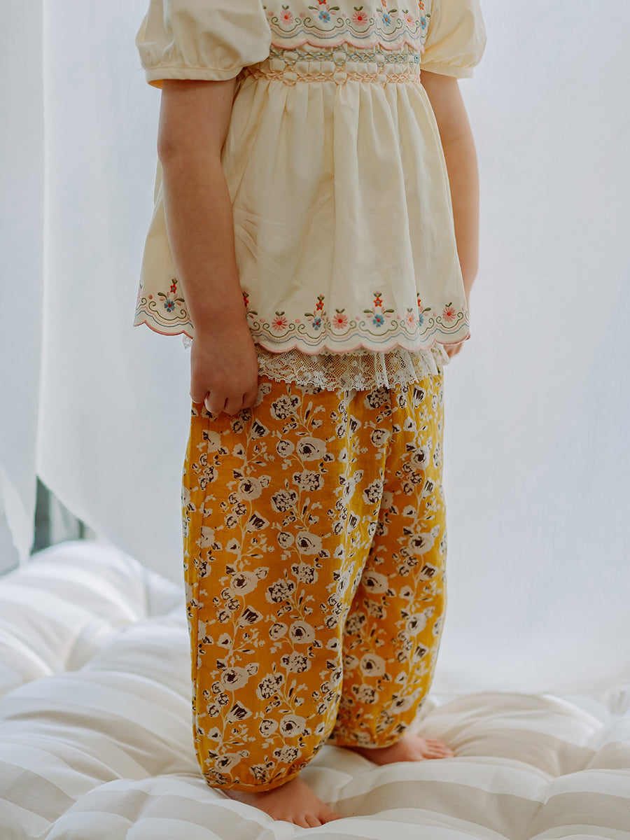 Valladolid Trousers, Happy Peony, Yellow
