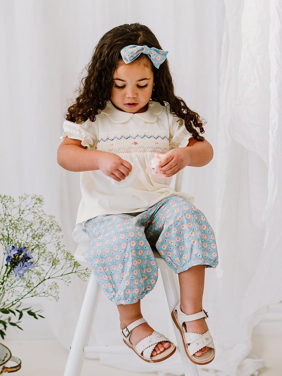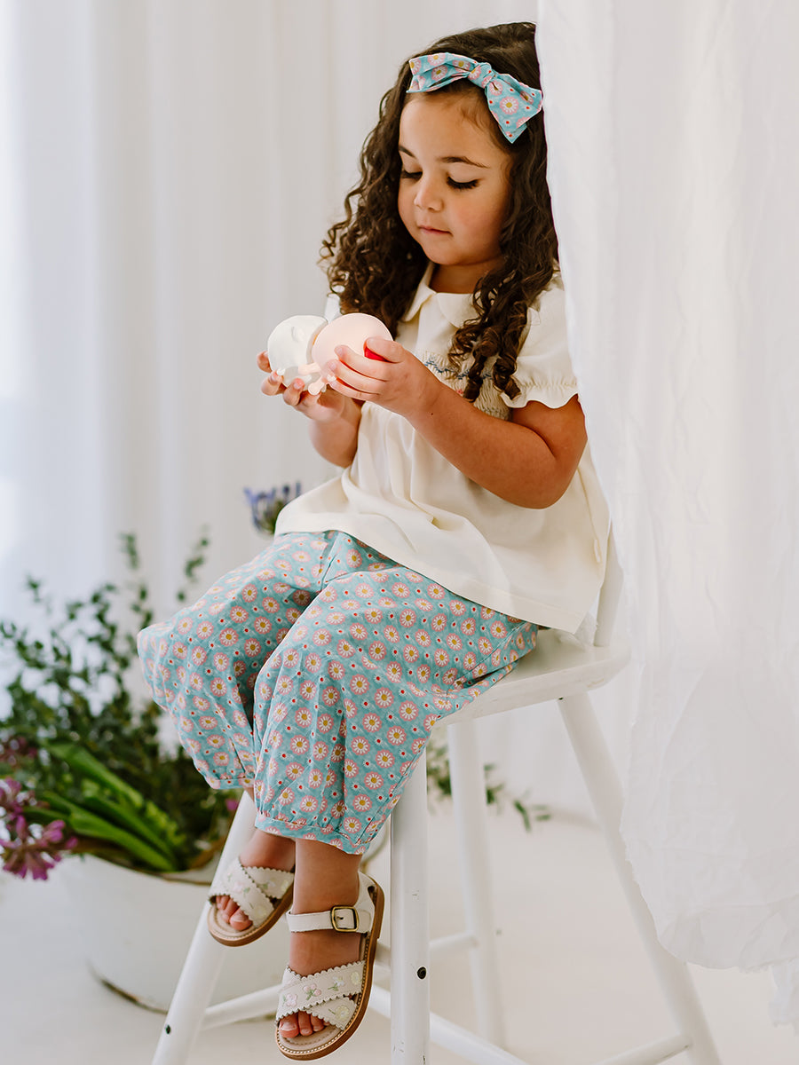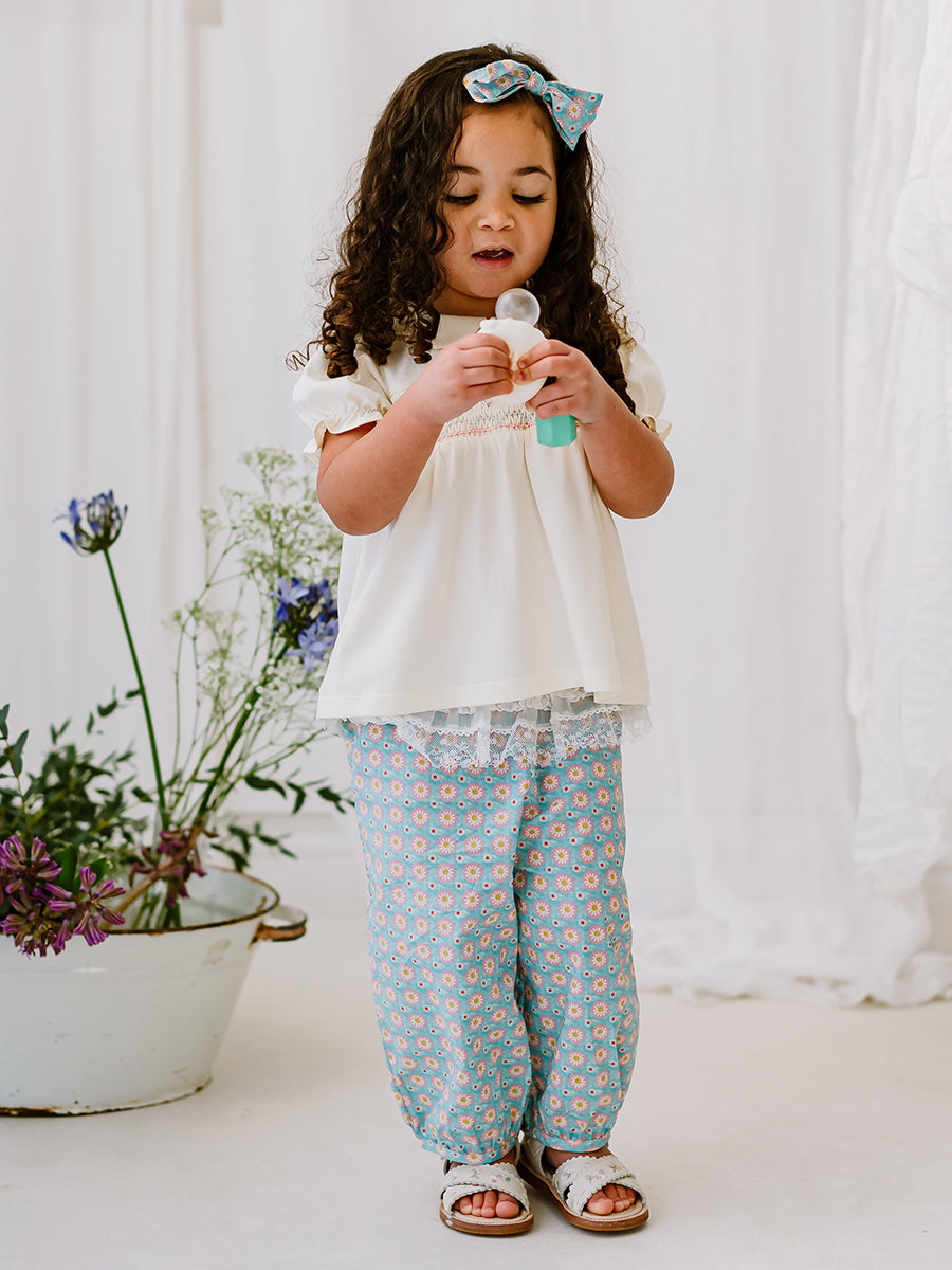 Valladolid Trousers, Ceramic Flowers, Teal