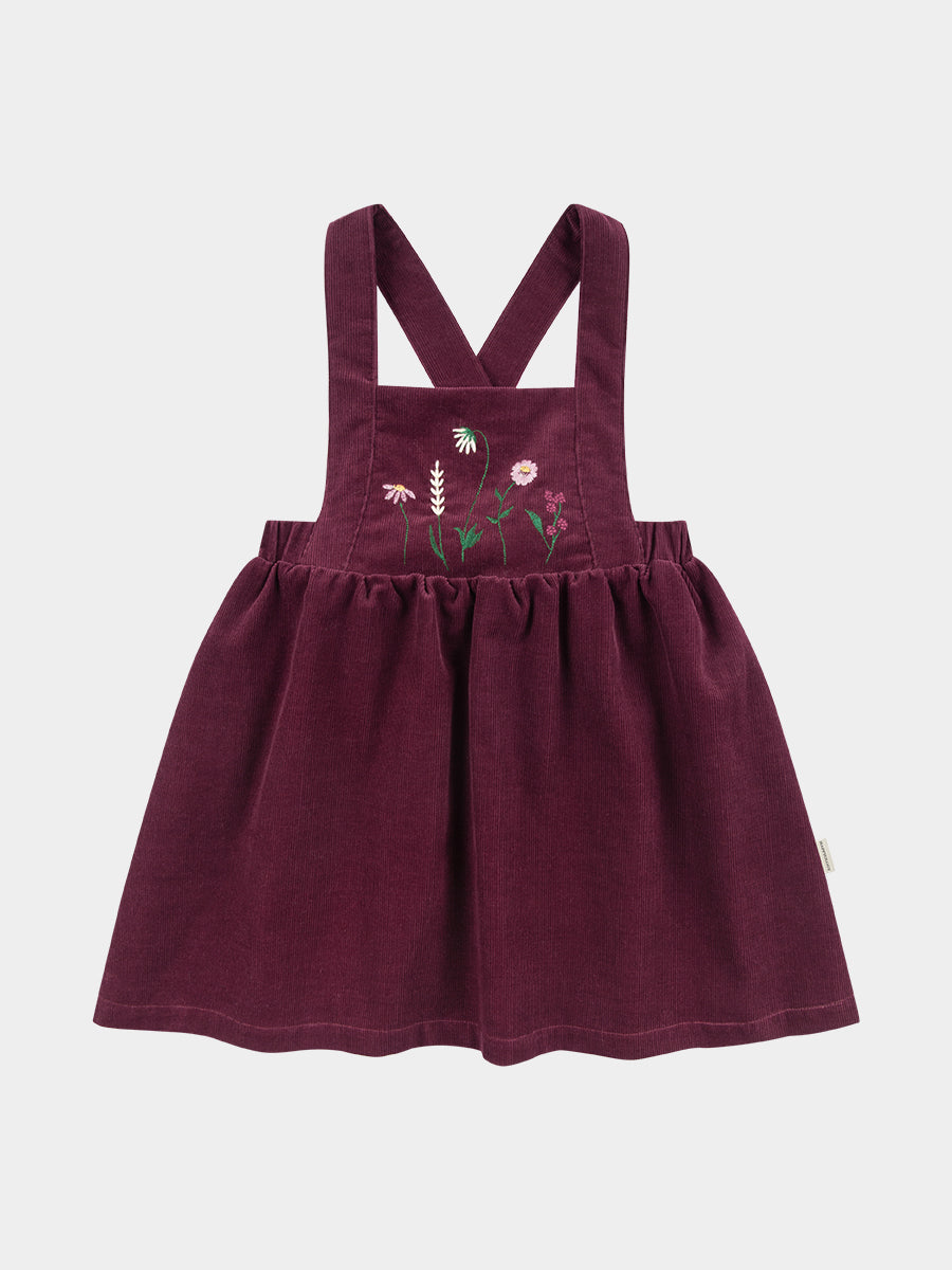 Kalmia Embroidered Corduroy Overall Dress, Wine Red