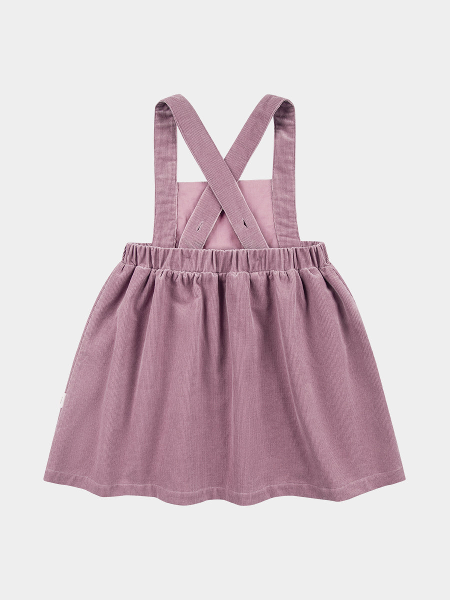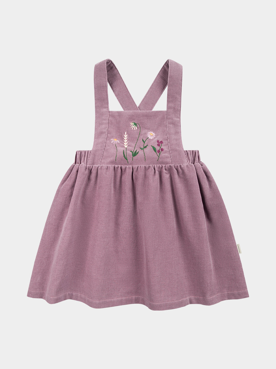Kalmia Embroidered Corduroy Overall Dress, Misty Pink
