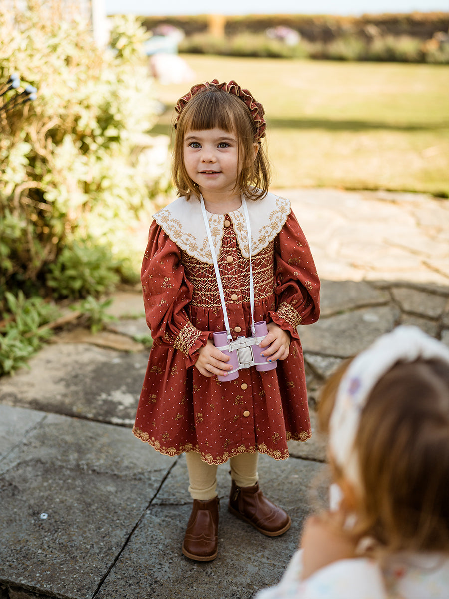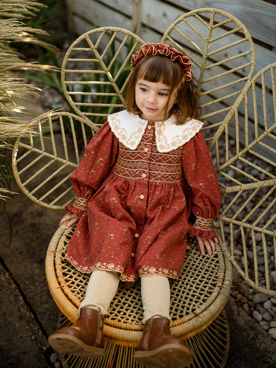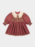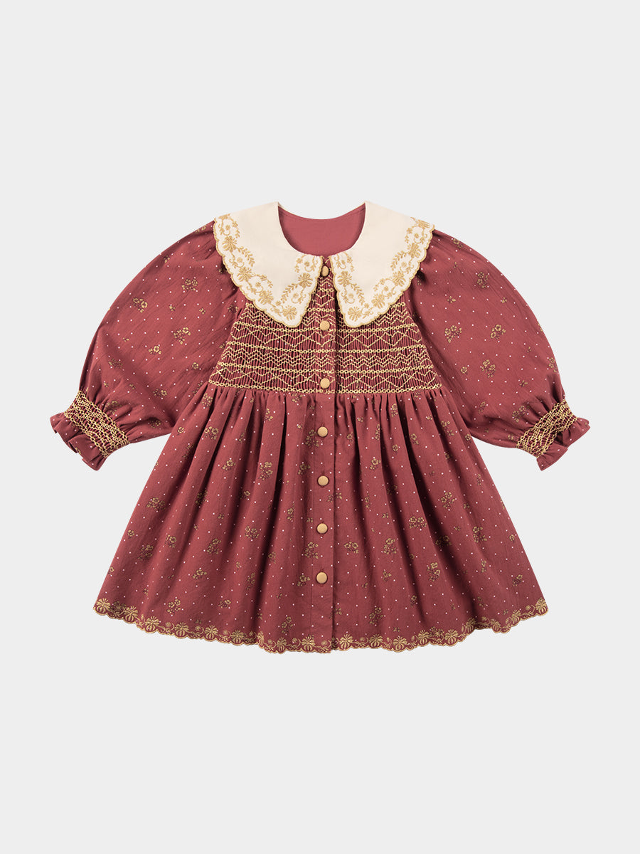 Jennie Hand-Smocked Dress, Wildflower Polka, Burgundy