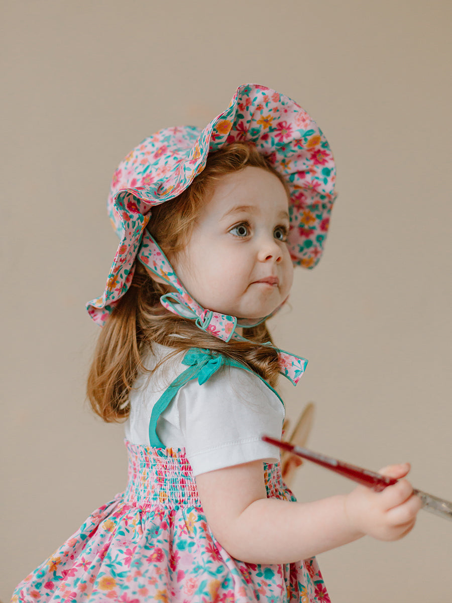 Strawberry Hand-Embroidered Bonnet, Princess Pink