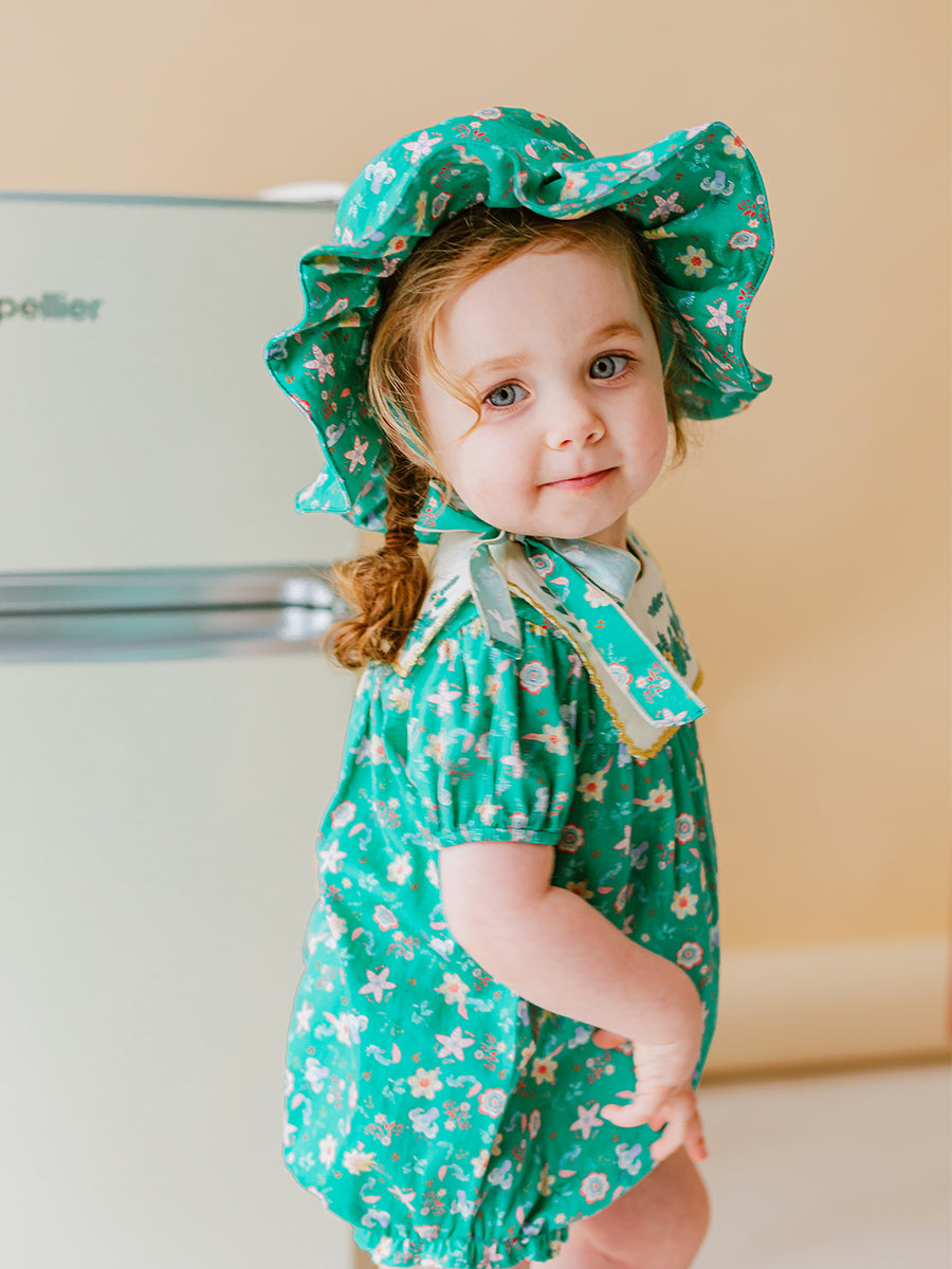 Freesia Velvet Bonnet, Lake Green