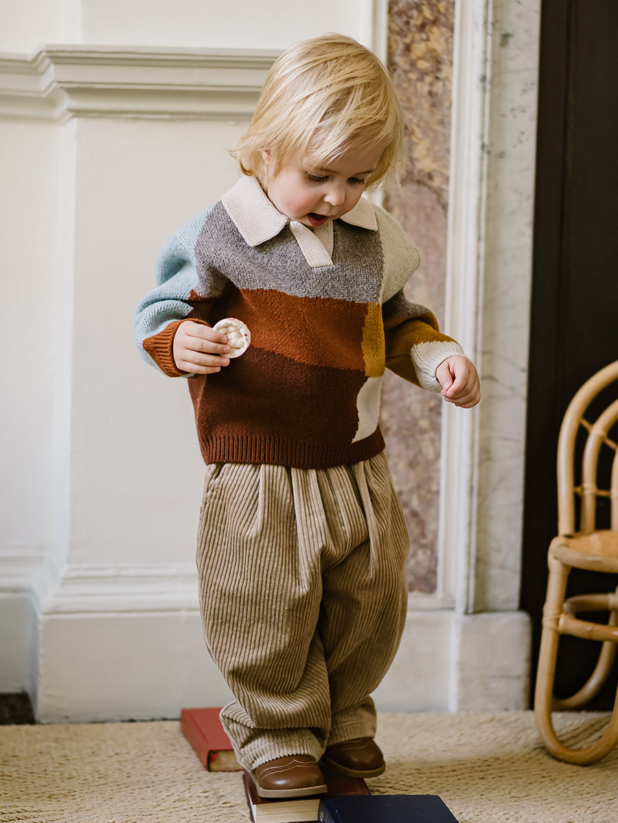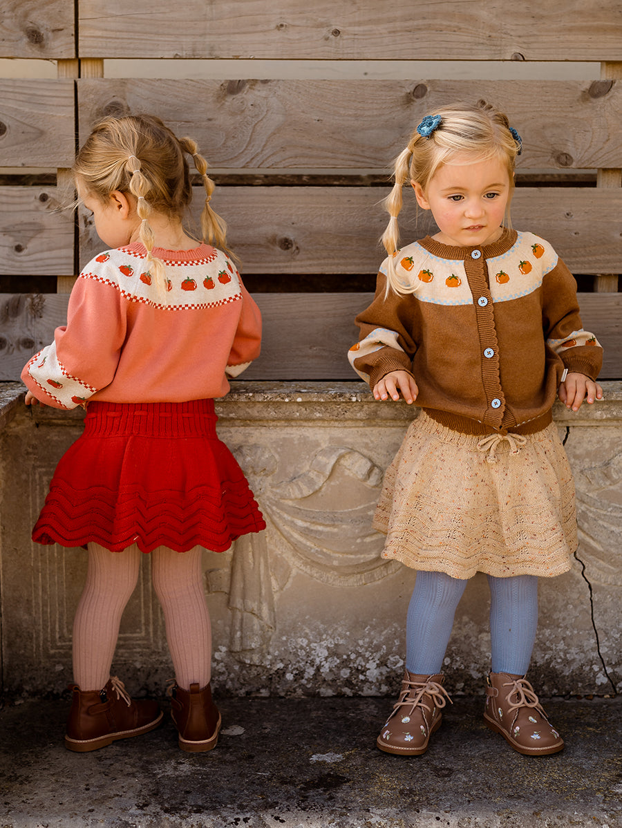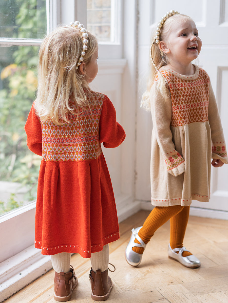 Crafted from the finest natural yarns - plush cashmere, extra-fine merino wool, and soft cotton - our knitwear wraps little ones in breathable warmth and everyday comfort. From timeless silhouettes to our signature Fair Isle patterns, each piece is designed and knitted in-house.