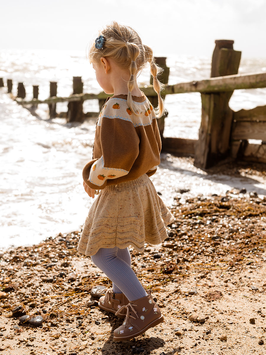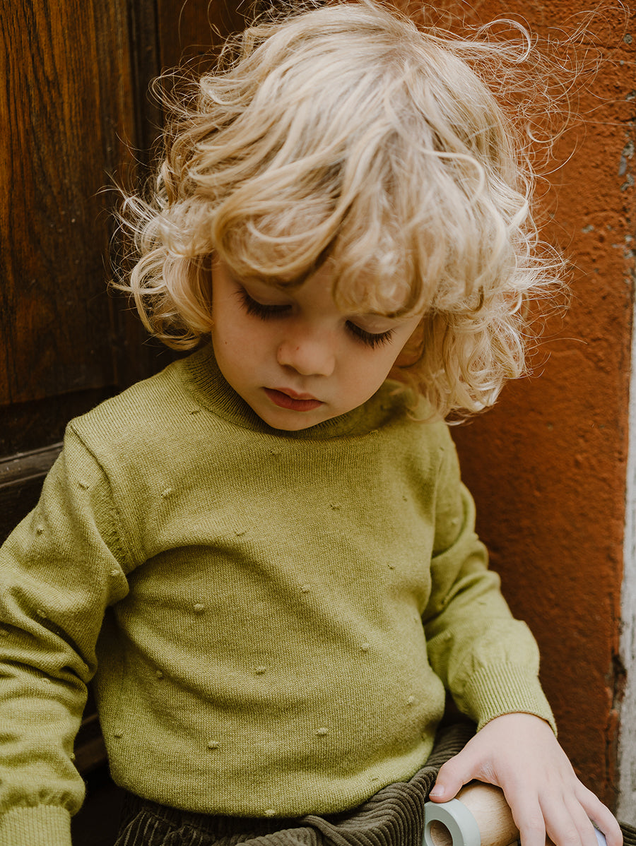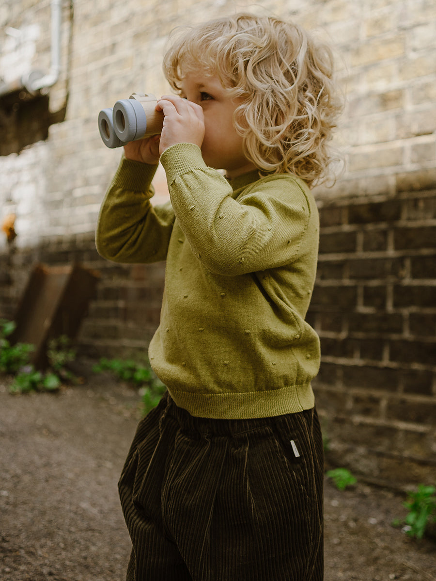 Crafted from the finest natural yarns - plush cashmere, extra-fine merino wool, and soft cotton - our knitwear wraps little ones in breathable warmth and everyday comfort. From timeless silhouettes to our signature Fair Isle patterns, each piece is designed and knitted in-house.