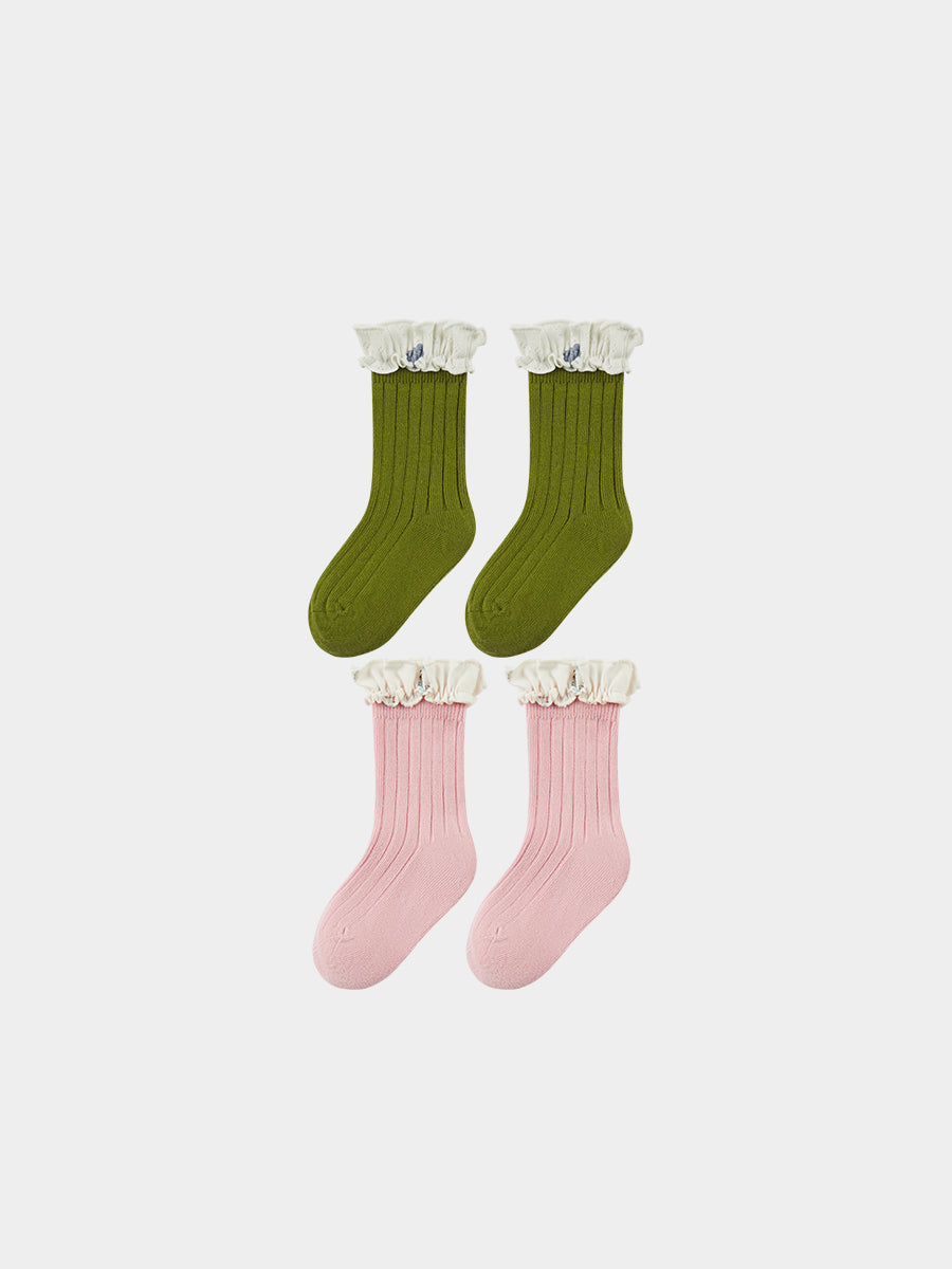 Jessielle Ankle Socks with Floral Ruffle, Misty Pink & Avocado Green
