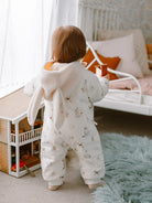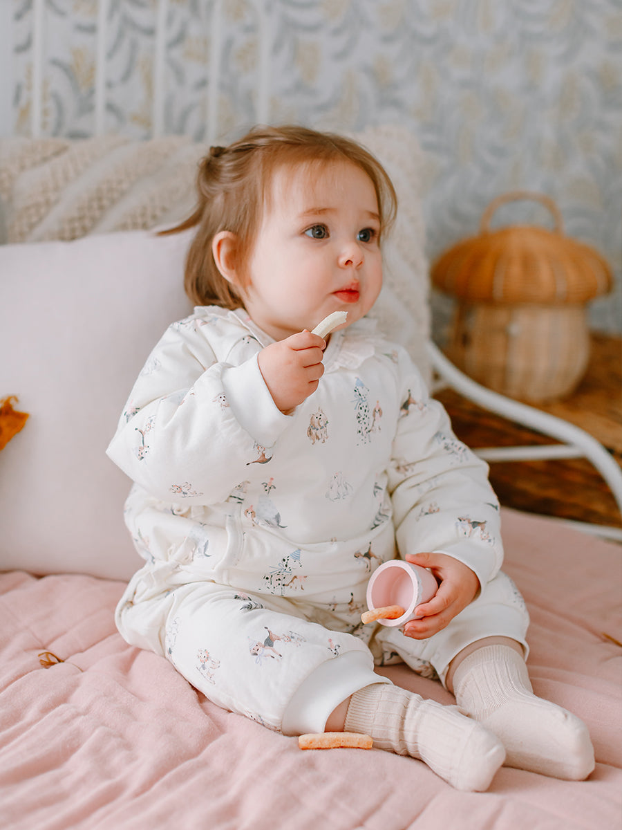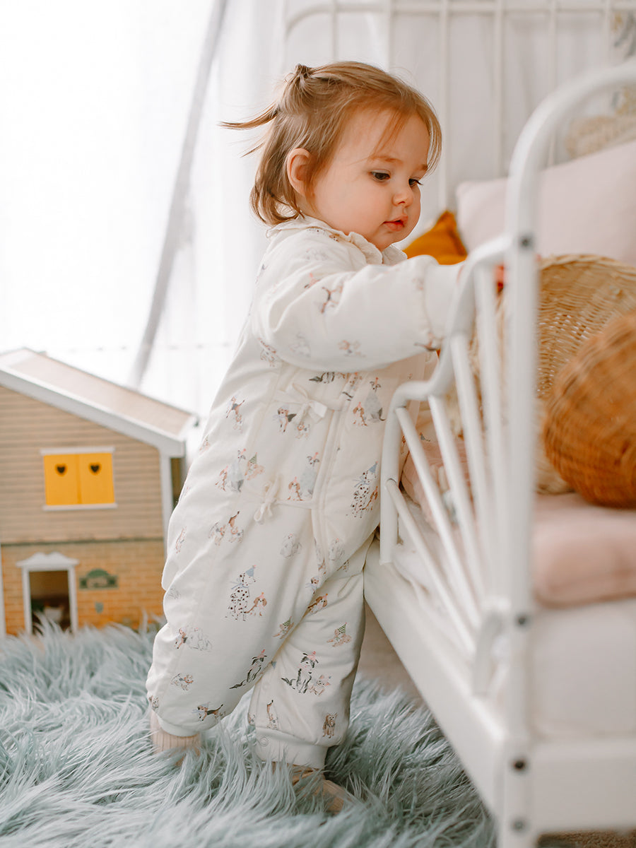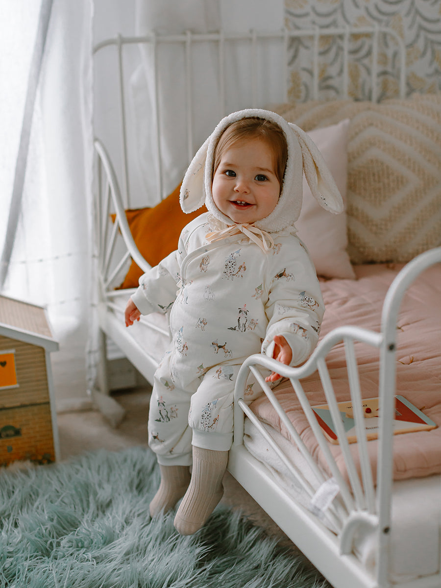 Um die richtige Passform zu gewährleisten, ist unsere Kleidung so konzipiert, dass sie bis zu einer bestimmten Größe passt. Beispielsweise ist die Größe 18M für ein Kind bis zu einem Alter von 18 Monaten oder einer Körpergröße von bis zu 86 cm gedacht.