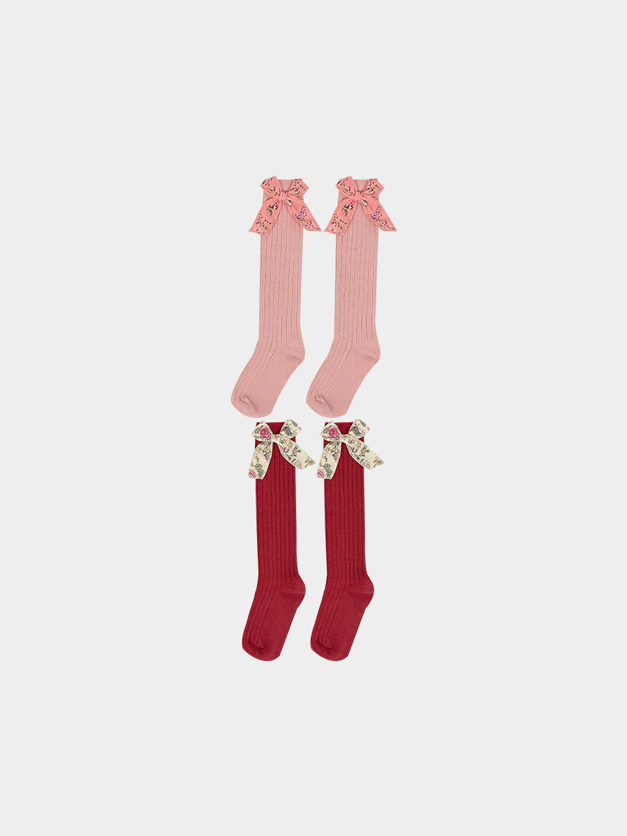 Noelle Bow Socks, Misty Pink & Princess Red