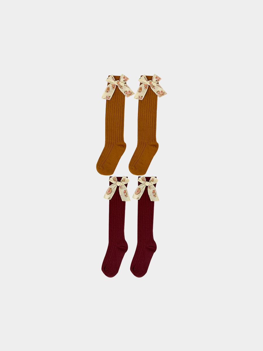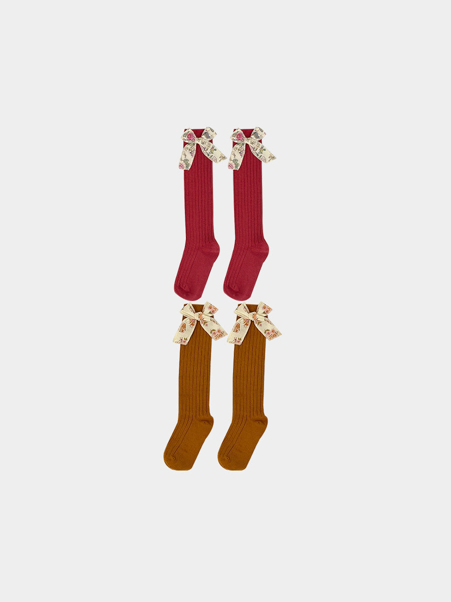Noelle Bow Socks, Princess Red & Caramel