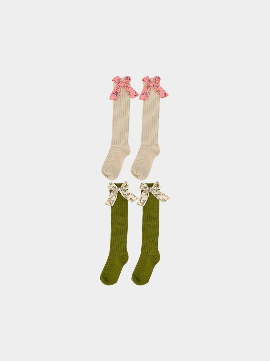 Noelle Bow Socks, Misty Pink & Avocado Green