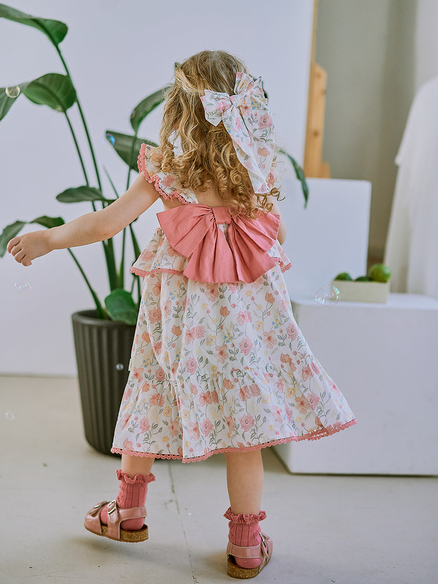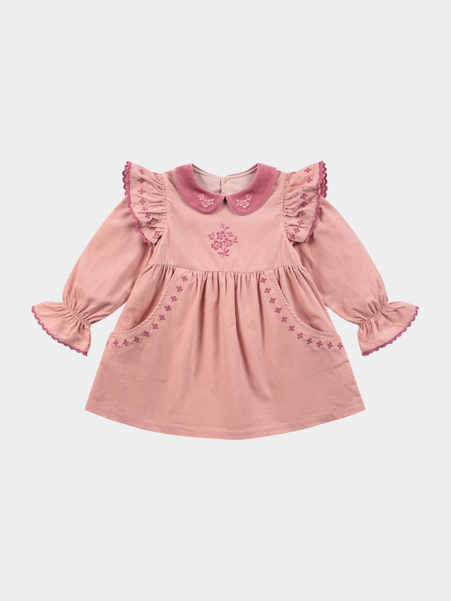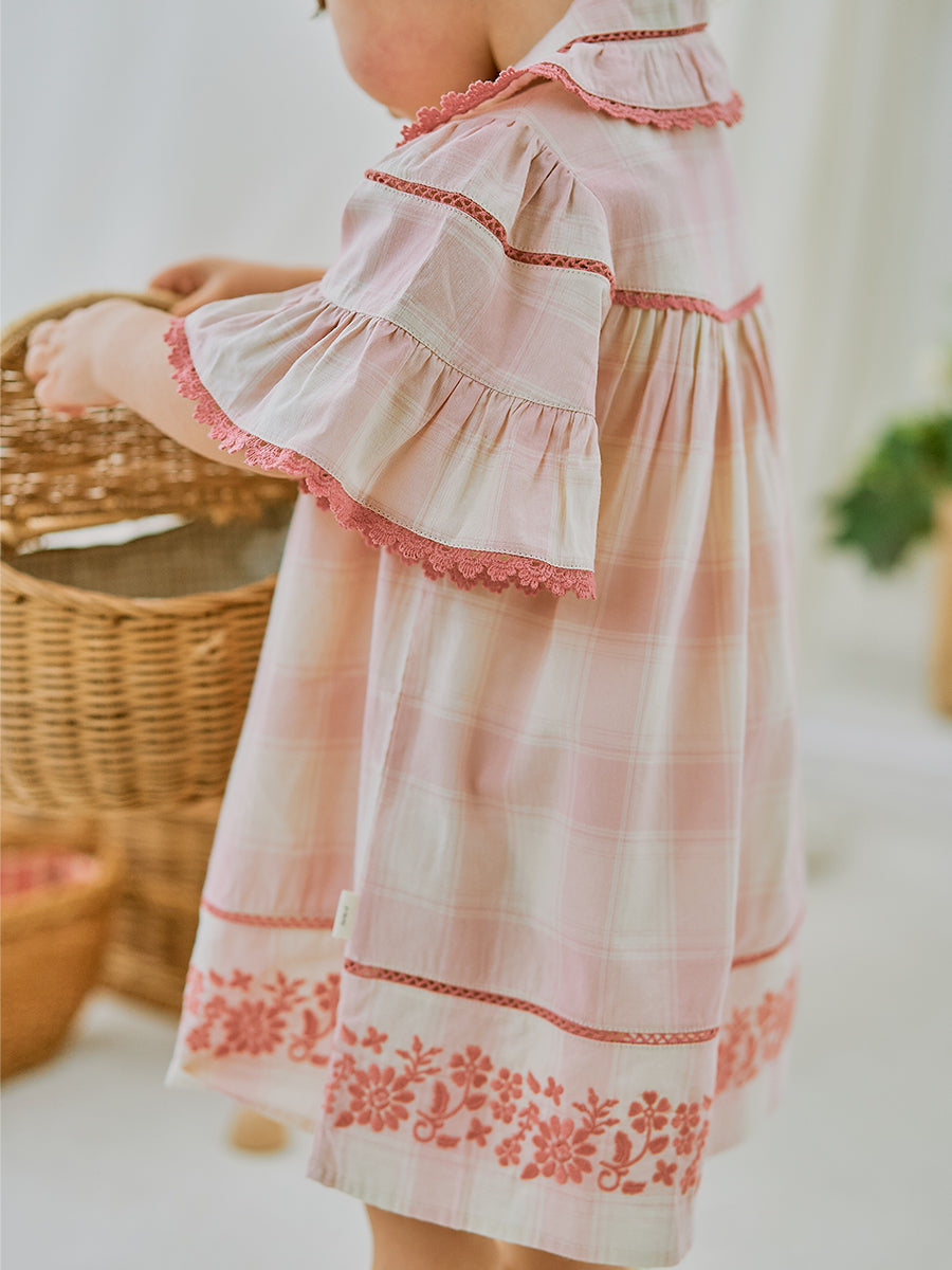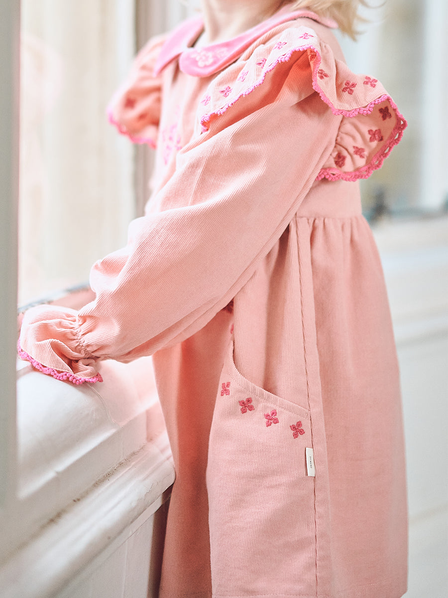 Laila Embroidered Dress, Strawberry Flower Field, Blush