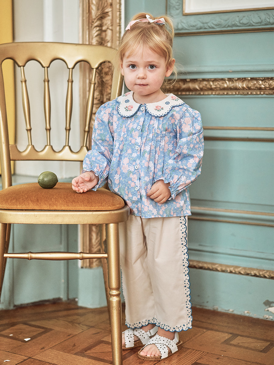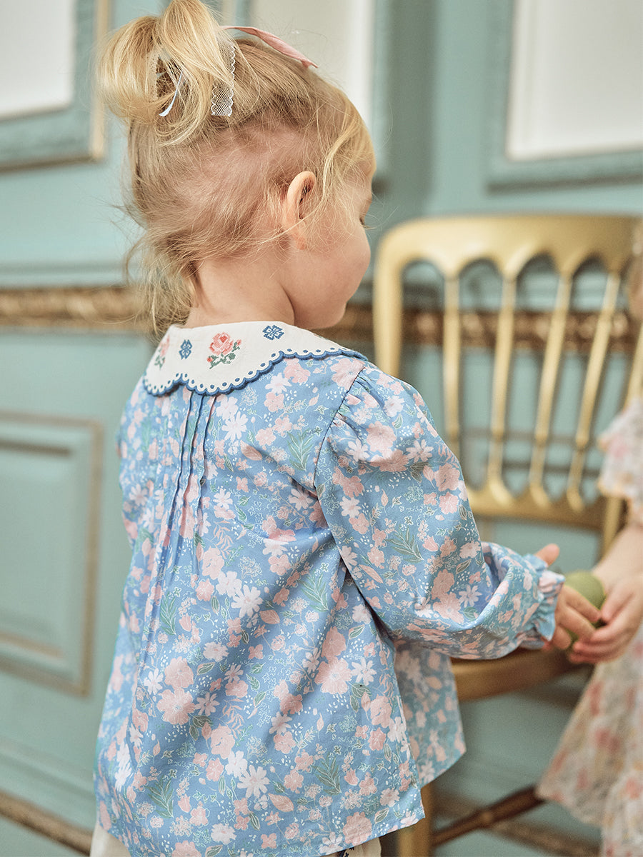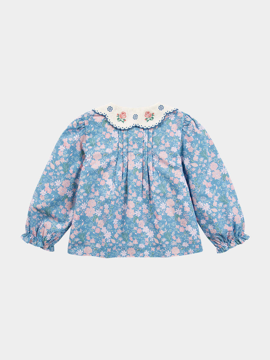 Monceux Embroidered Blouse, Wildflower Lawn - Blue