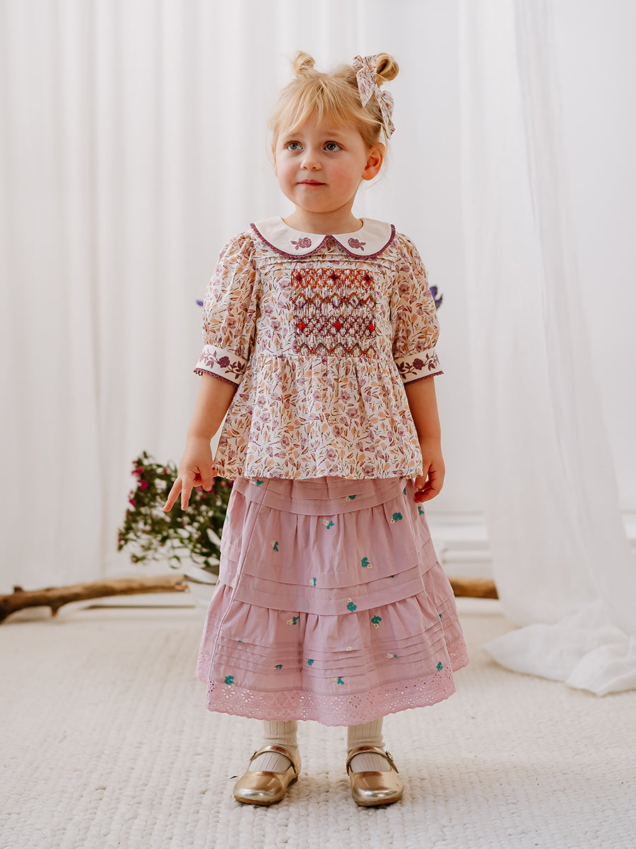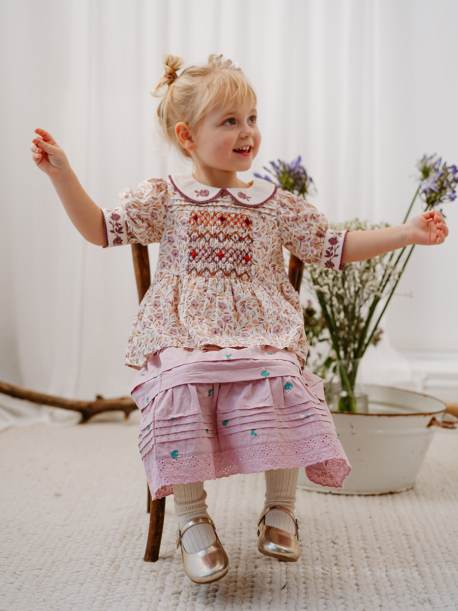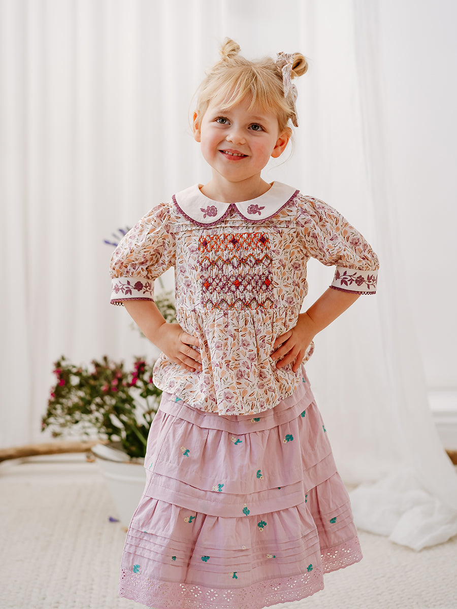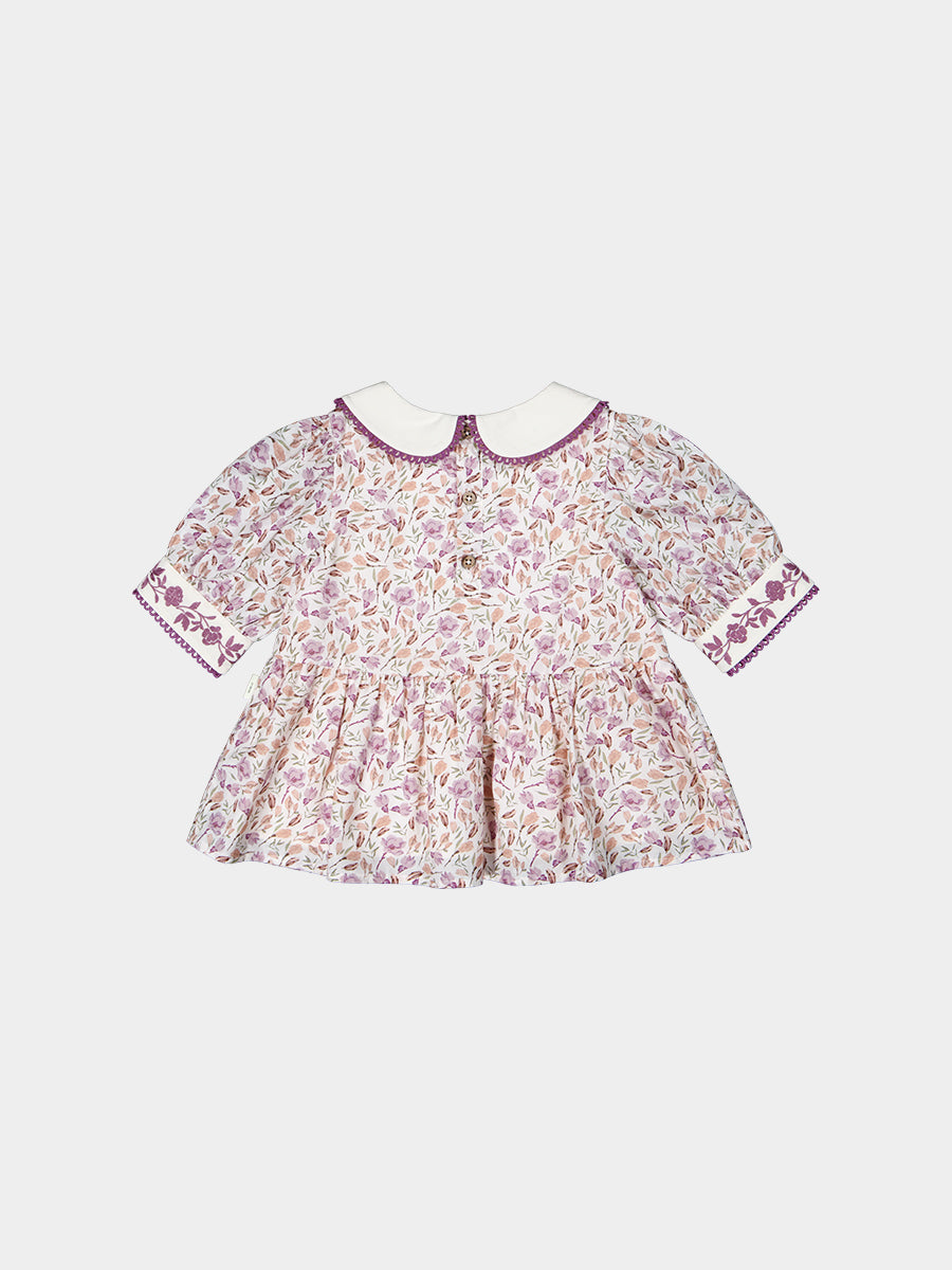Trapani Hand-Embroidered Blouse, Lilac Magnolia