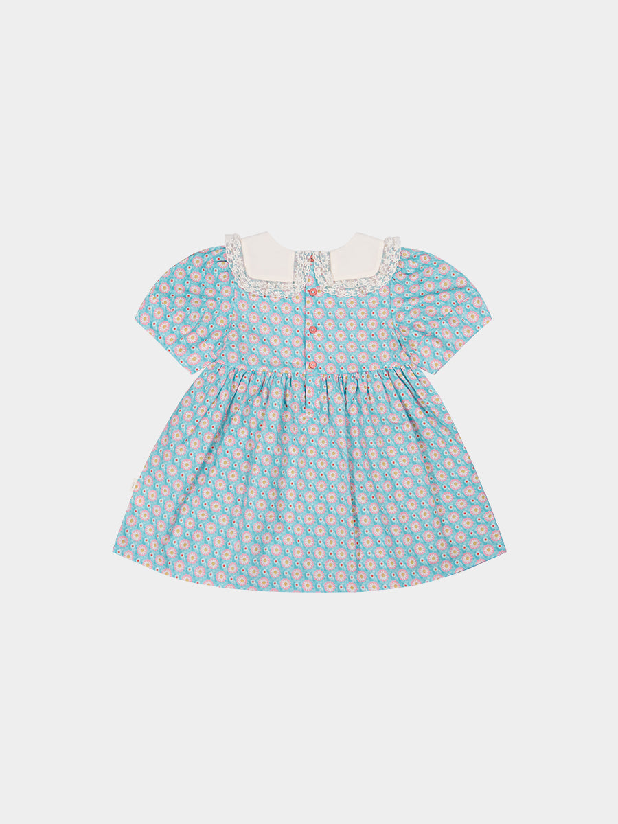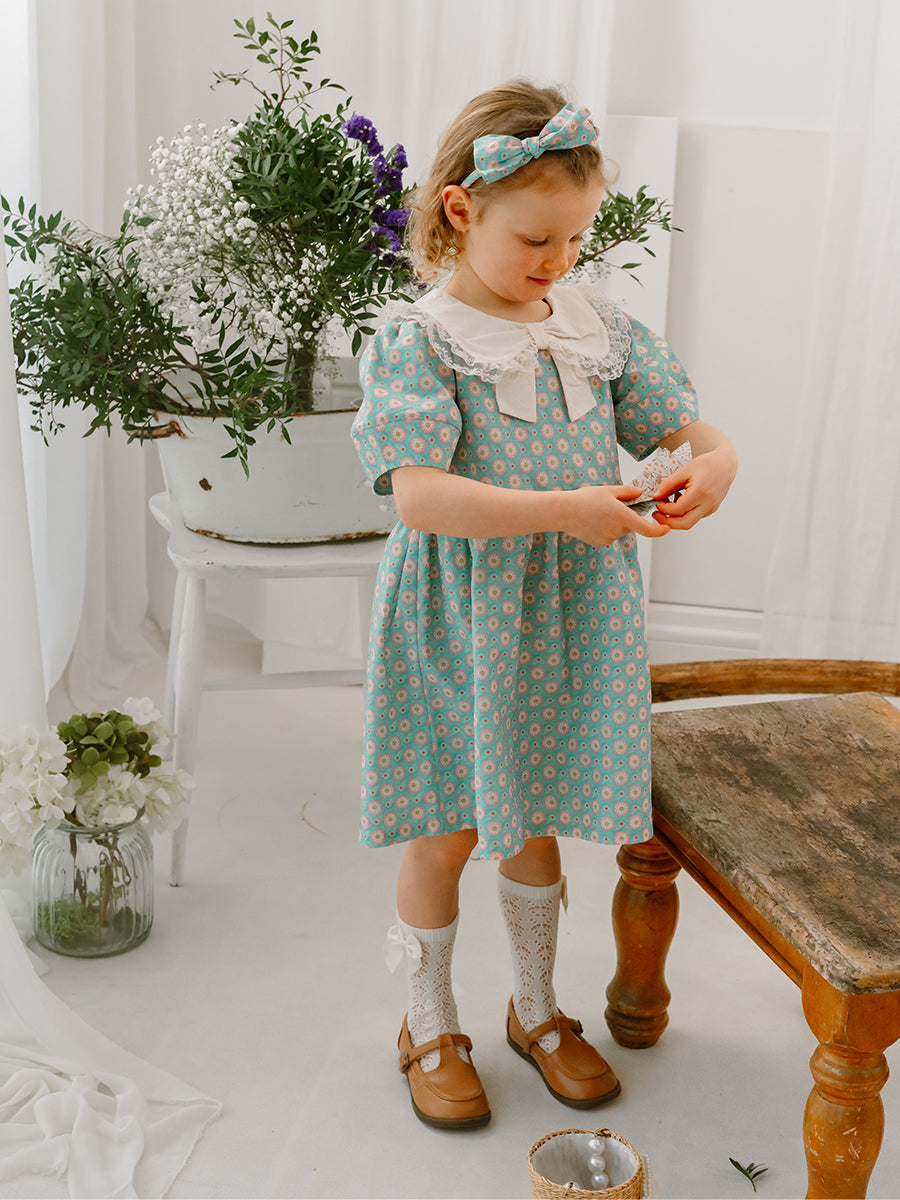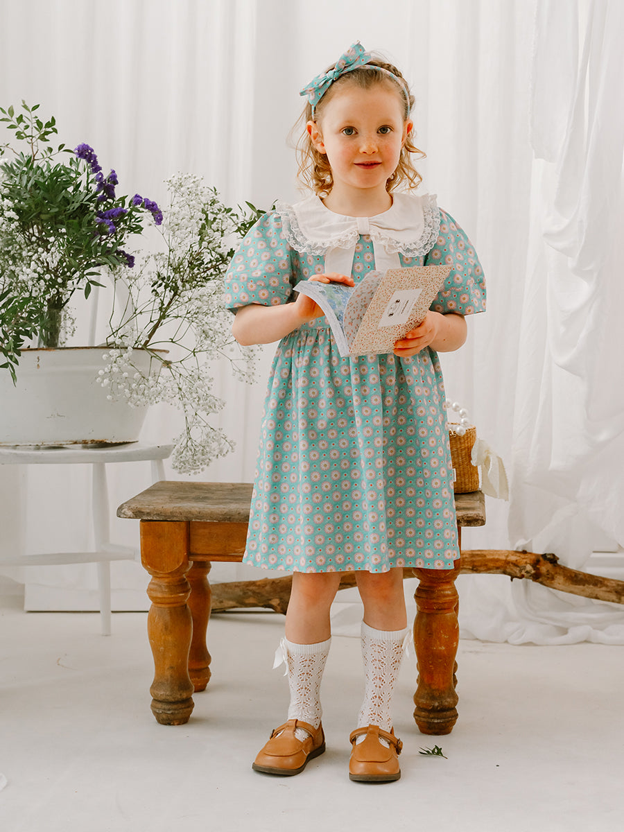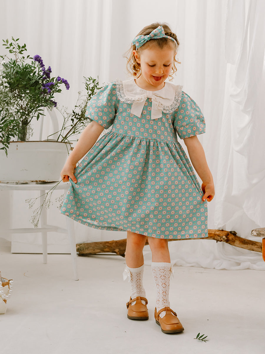 Amsterdam Bow Dress, Ceramic Flowers, Teal