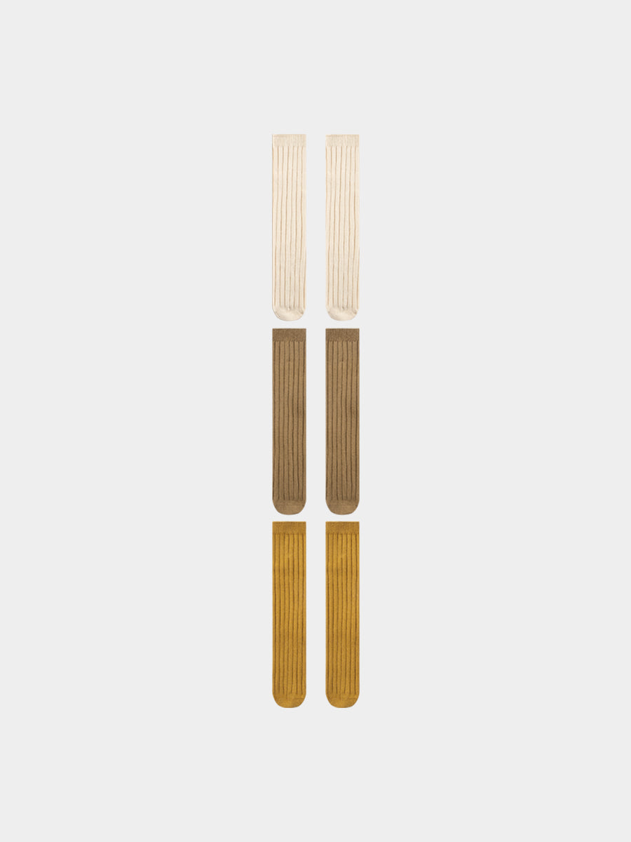 Happyology Kniestrümpfe 3er-Set, Khaki & Ingwergelb & Creme