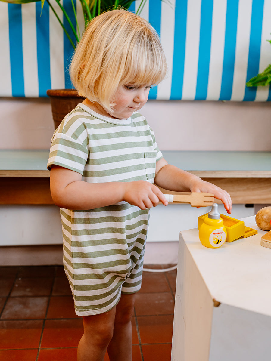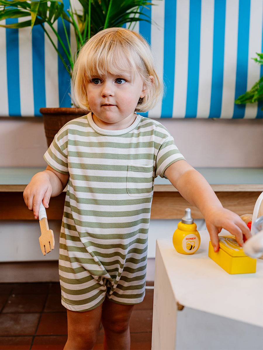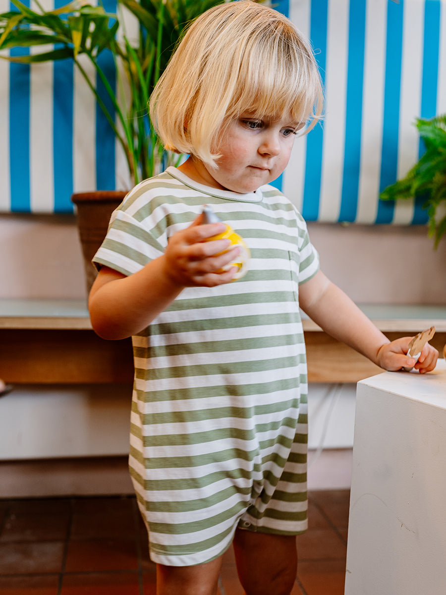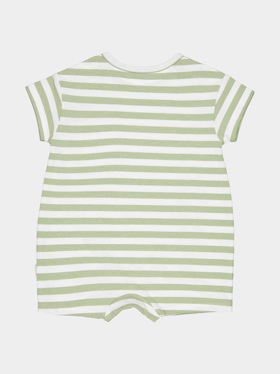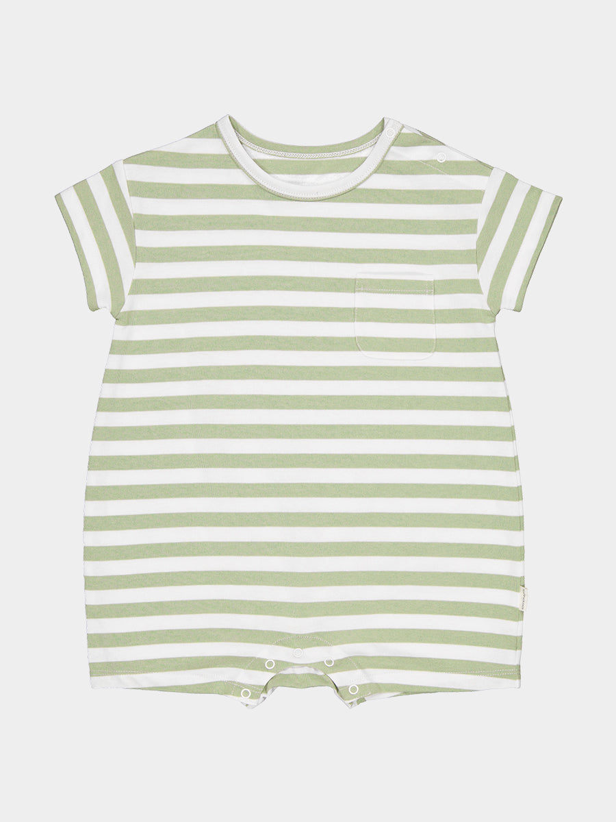Wallasey Strampler aus Bio-Baumwolljersey, grün gestreift