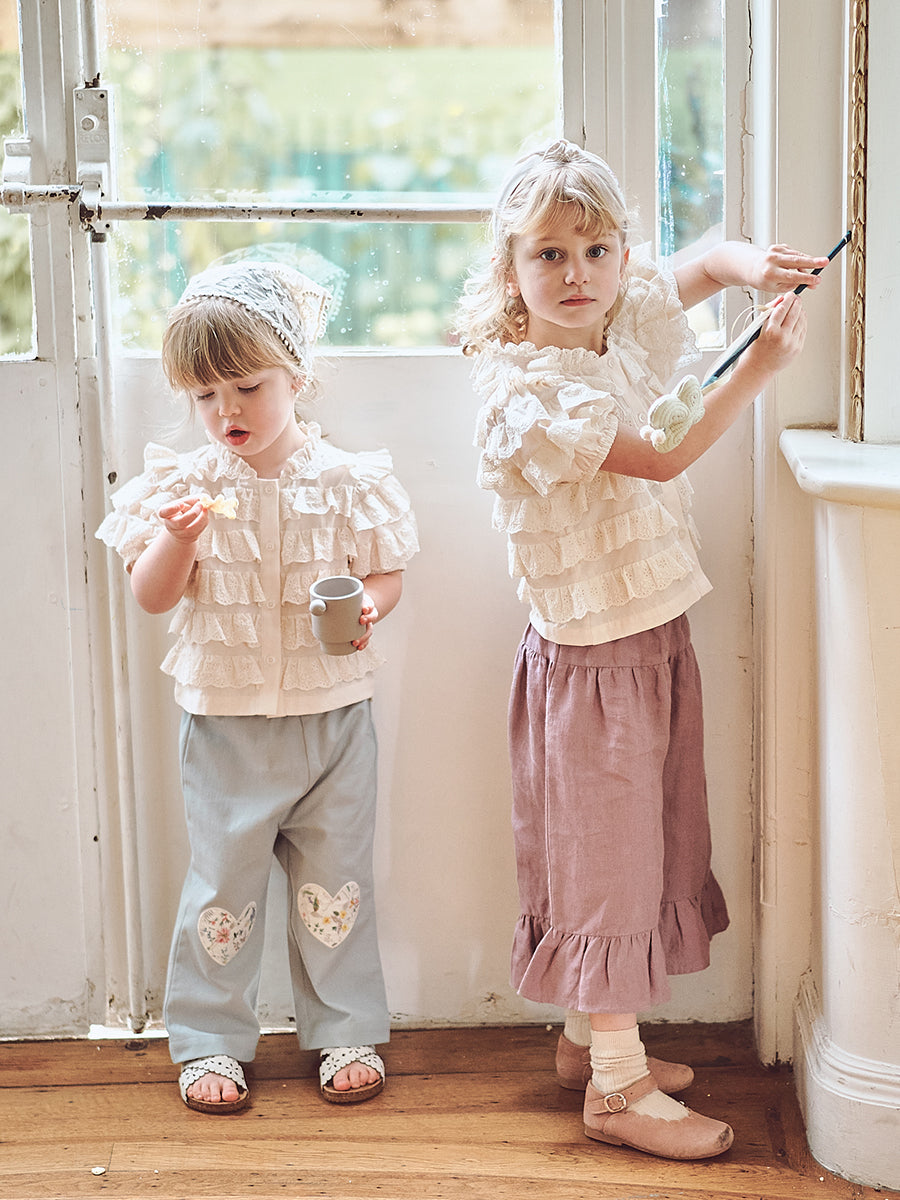 Amara Heart Patchwork Trousers, Soda Blue