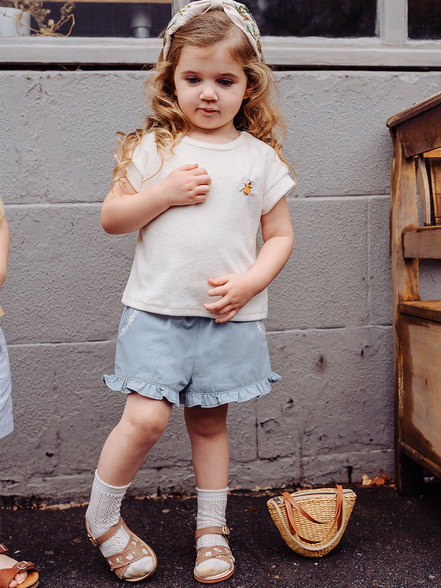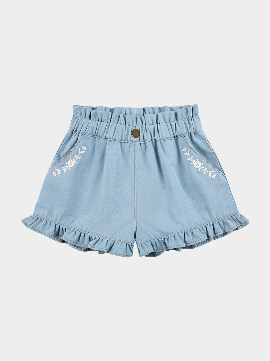 Bath Embroidered Shorts, Sky Blue