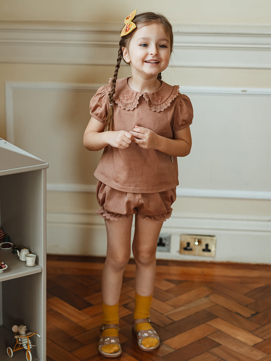 Canterbury Embroidered Cotton Jersey Blouse, Caramel