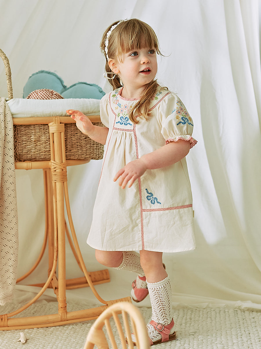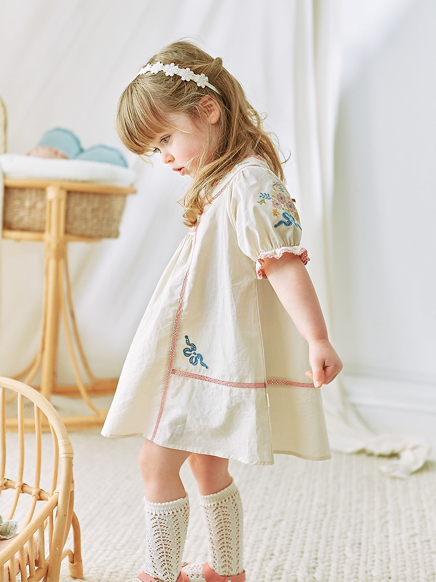 Morray Embroidered Dress, Crème Brulee