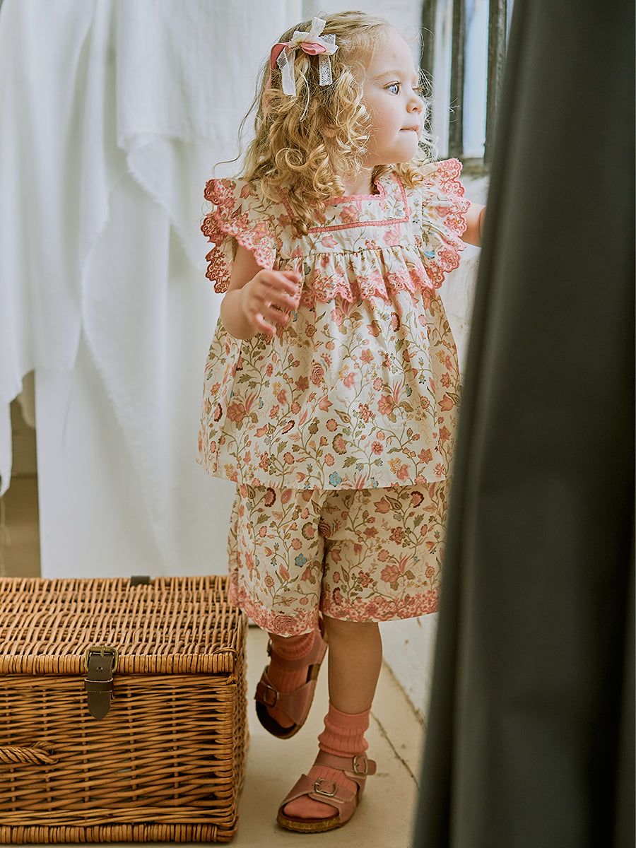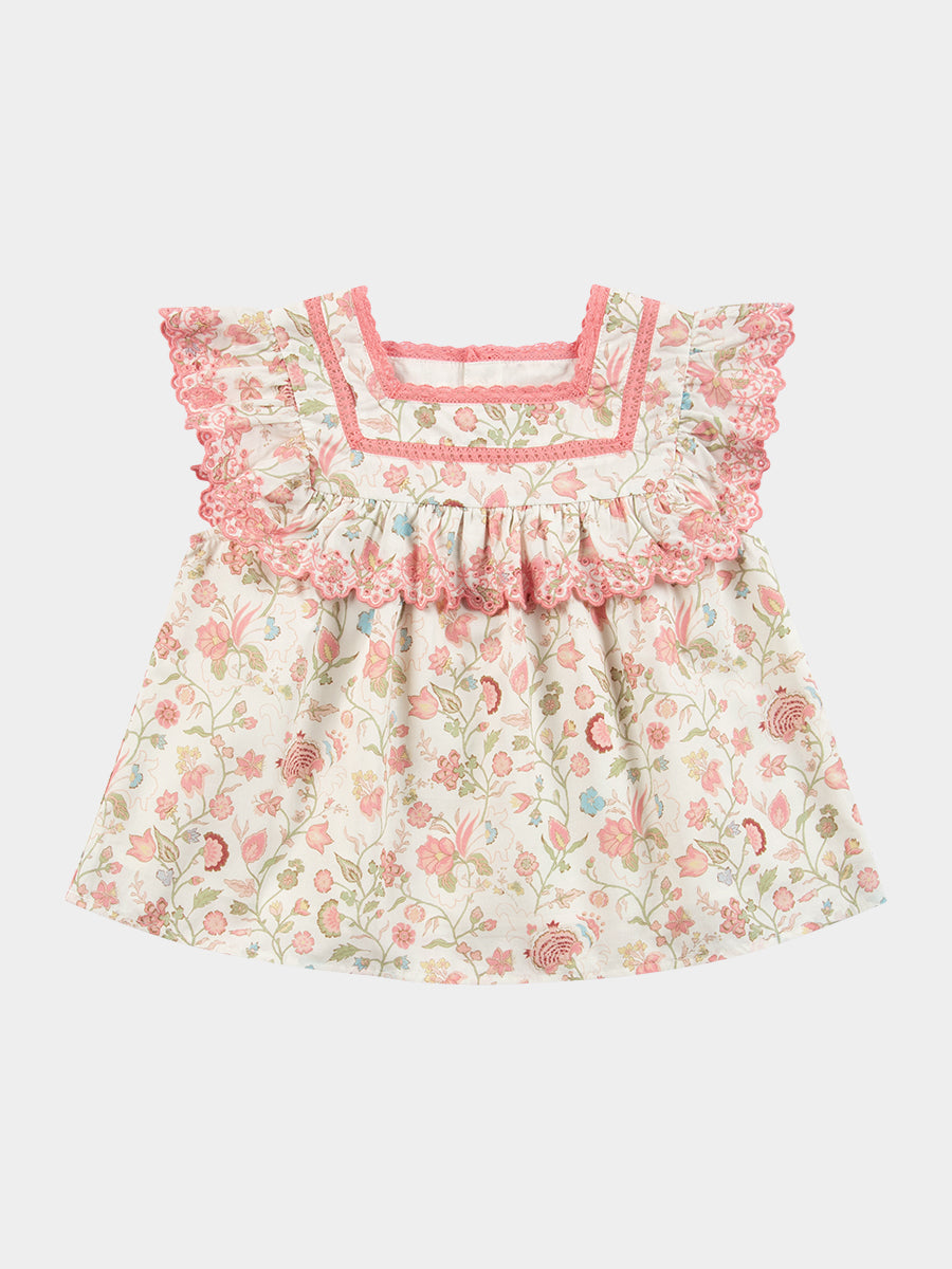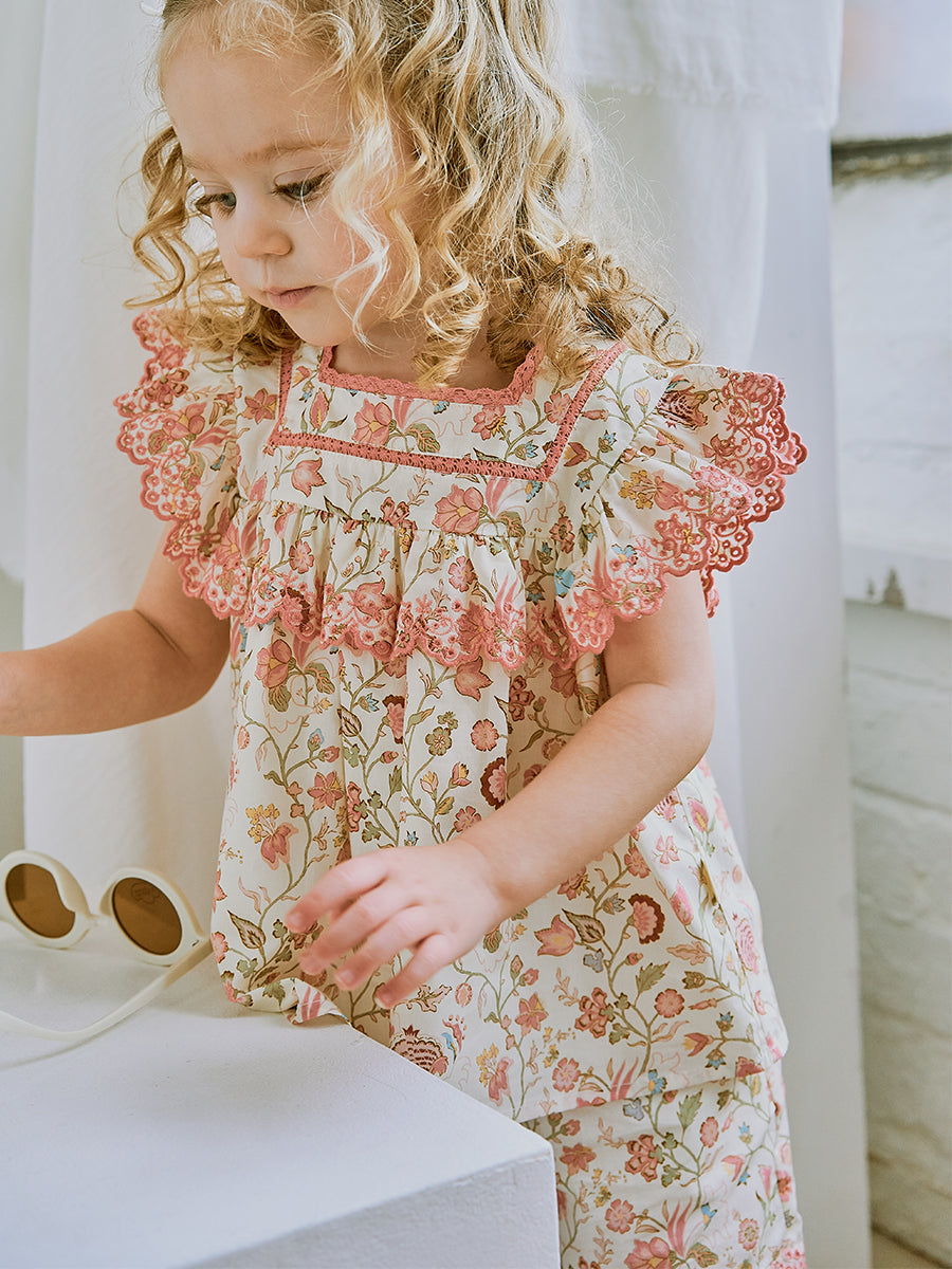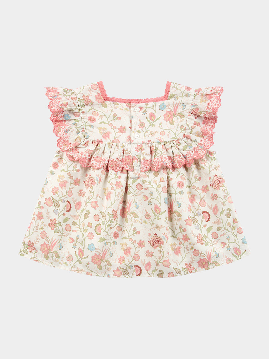 Ashoka Hand Smocked Blouse, Printed Rosa White
