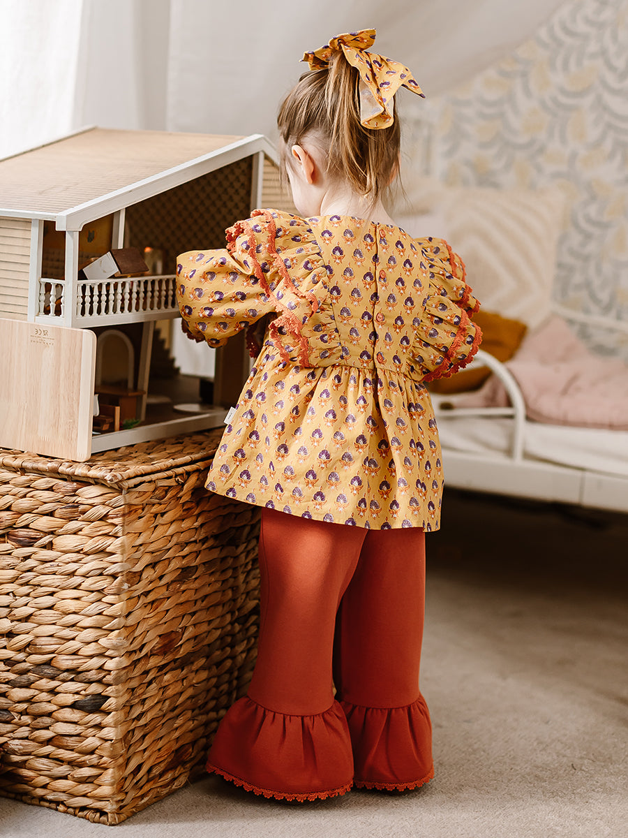 Leela Linen Flared Trousers, Amber Brown