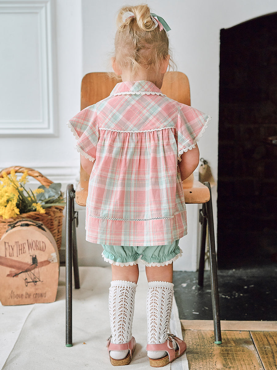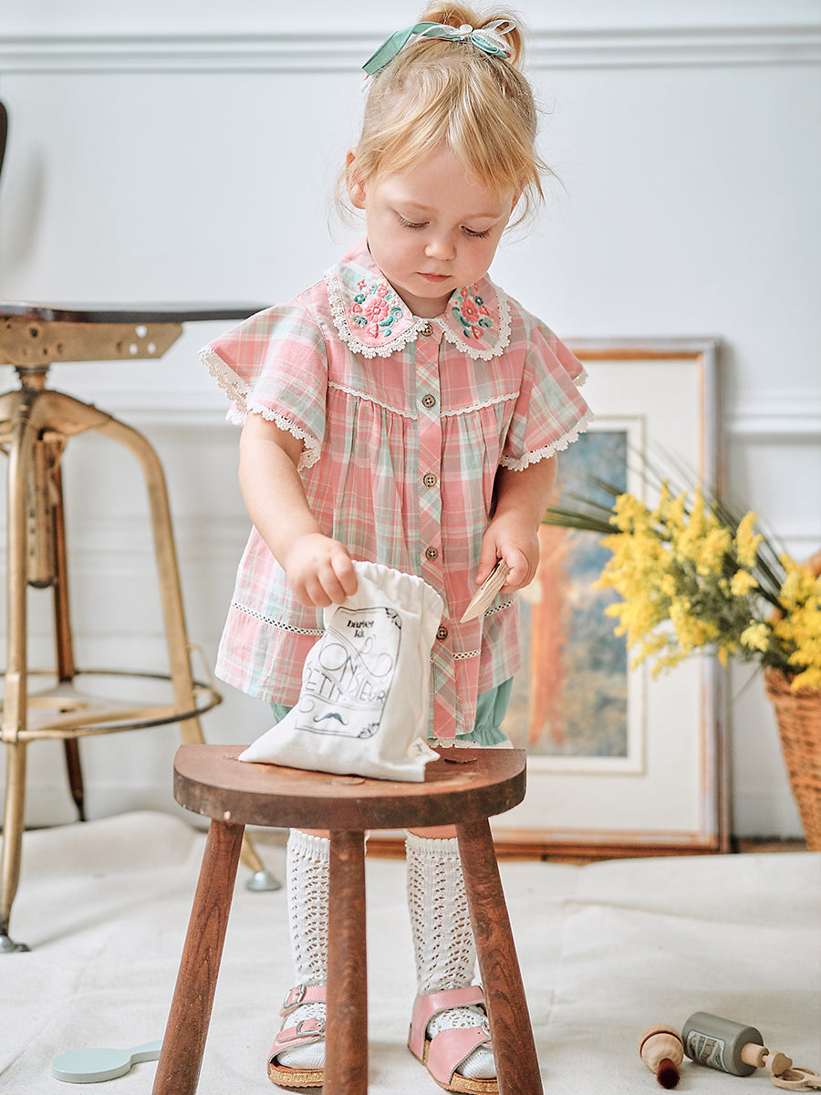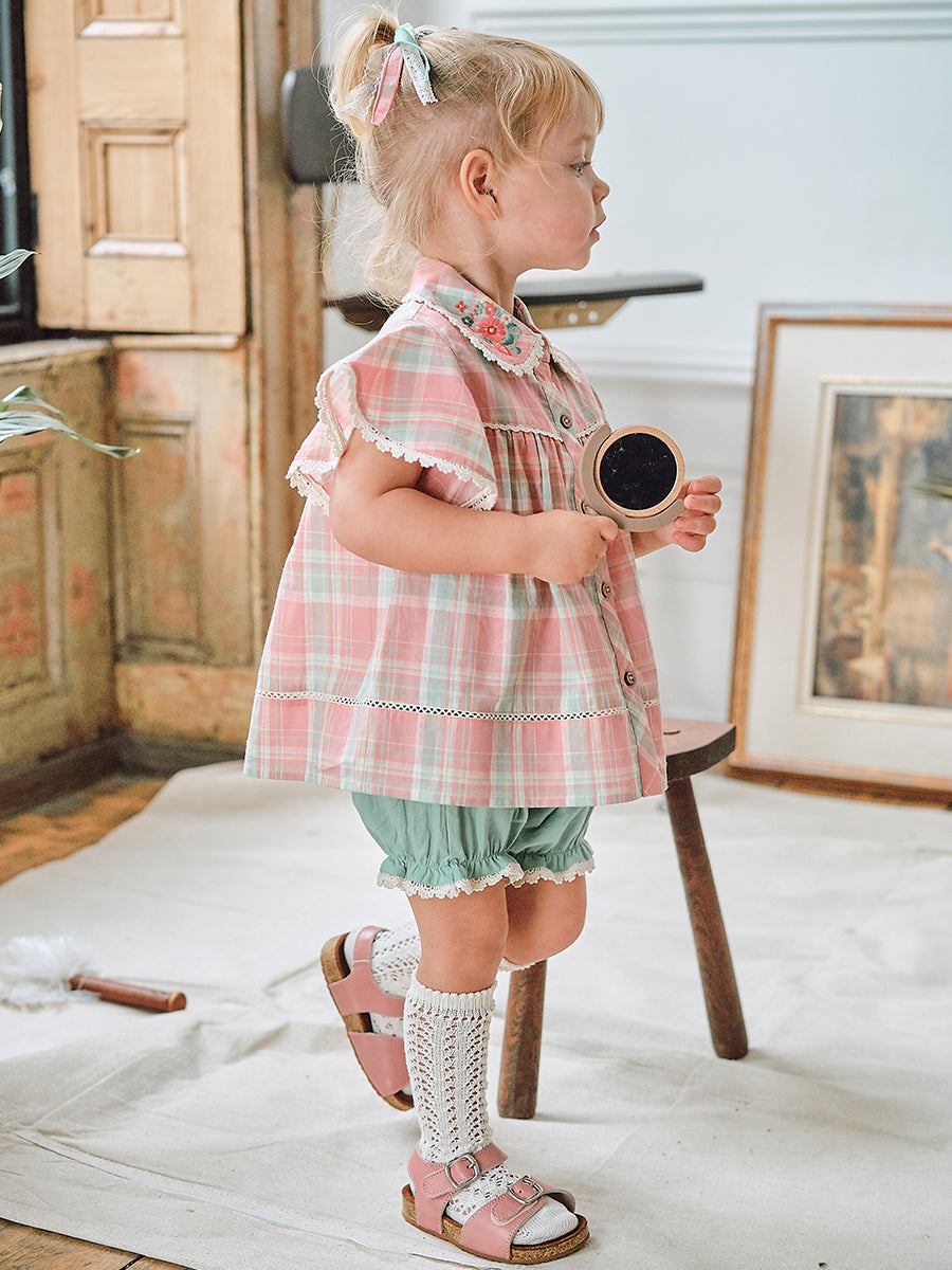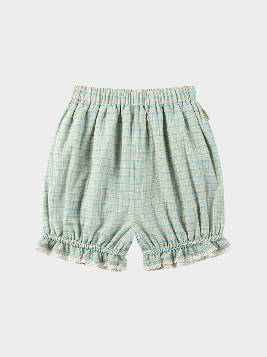 Amrita Embroidered Shorts, Blue Check