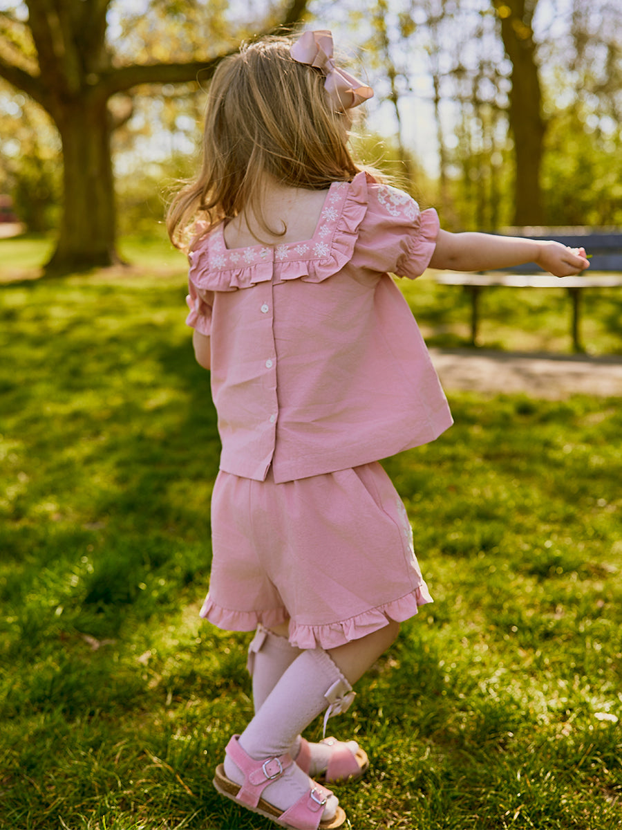 Amrita Embroidered Shorts, Princess Pink