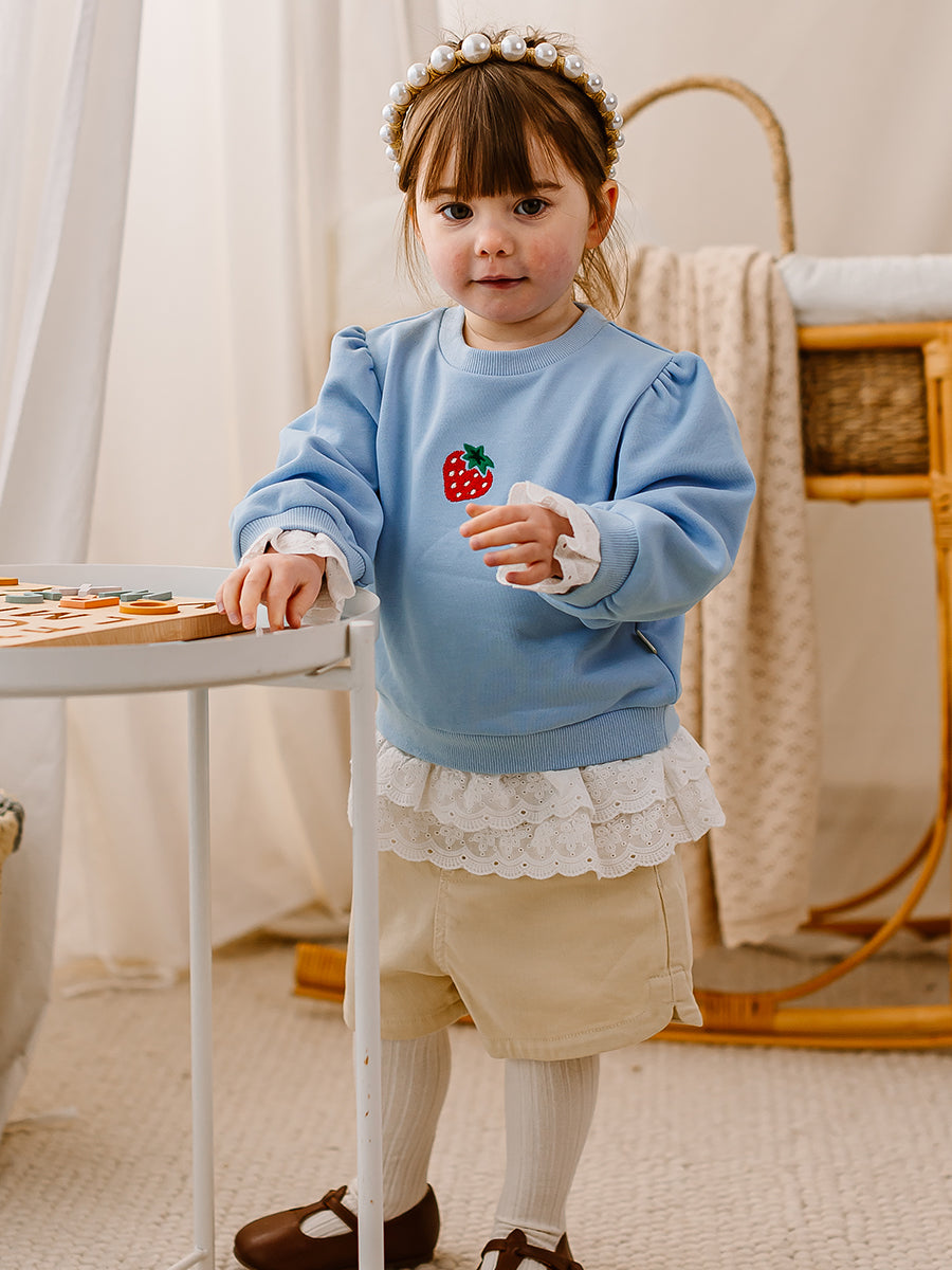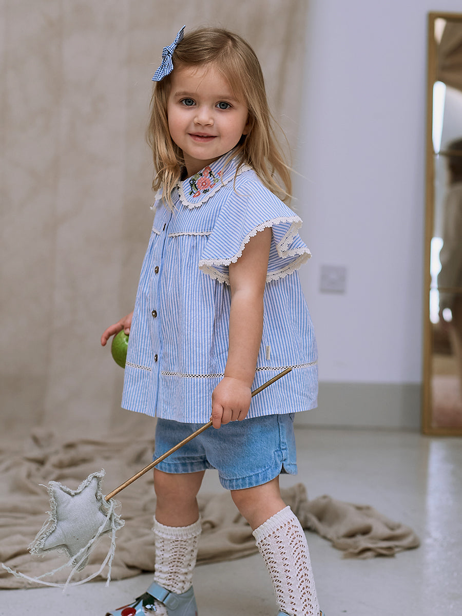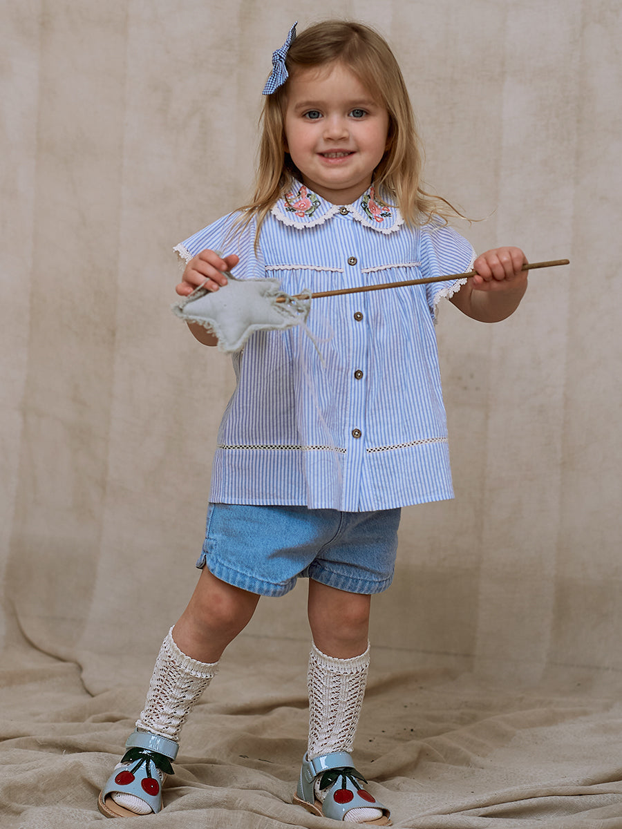 Bath Embroidered Shorts, Sky Blue