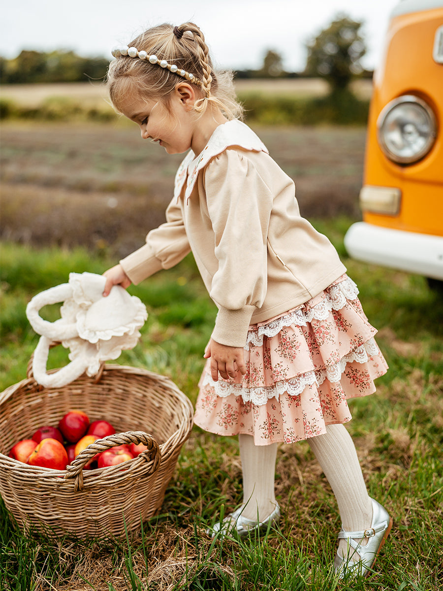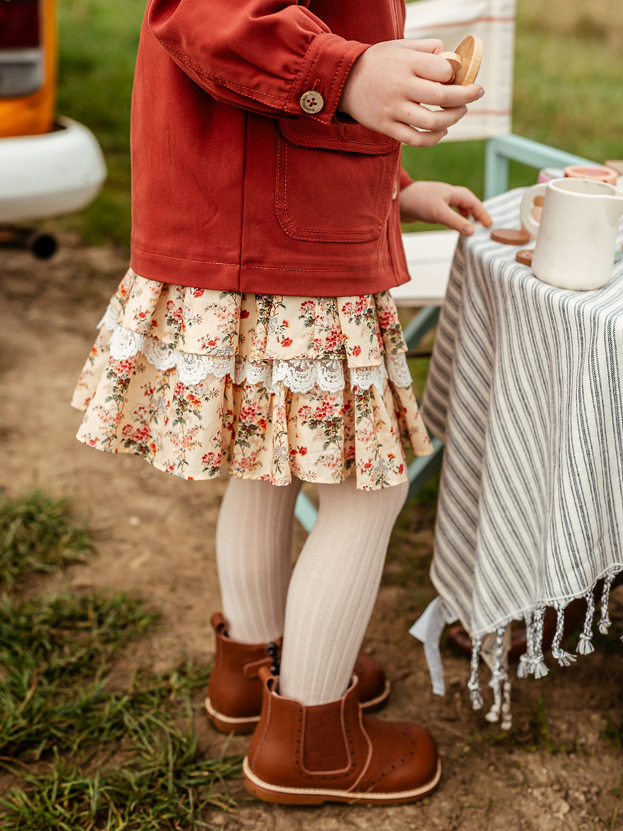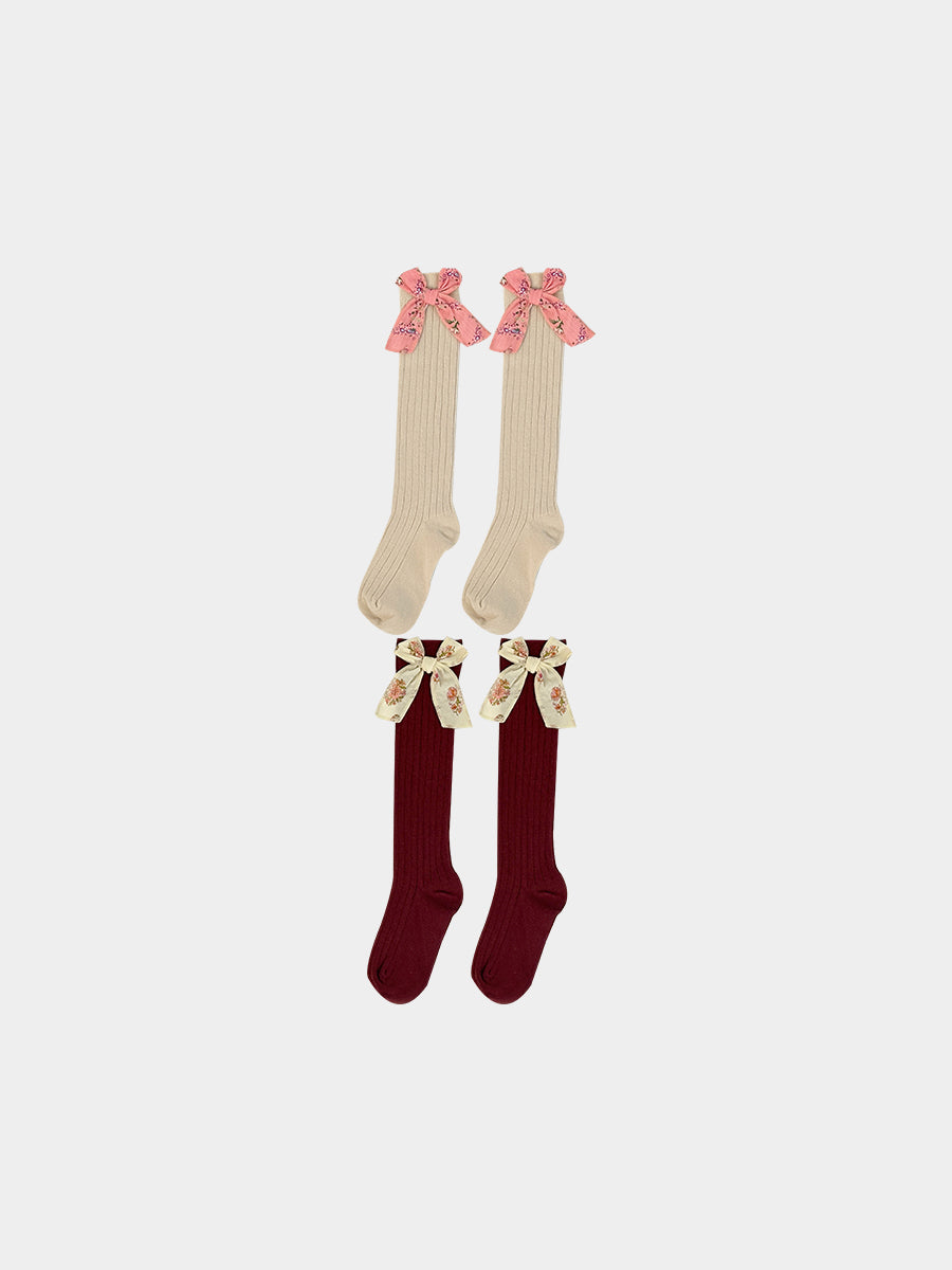 Noelle Bow Socks, Pomegranate Red & Crème Brulee