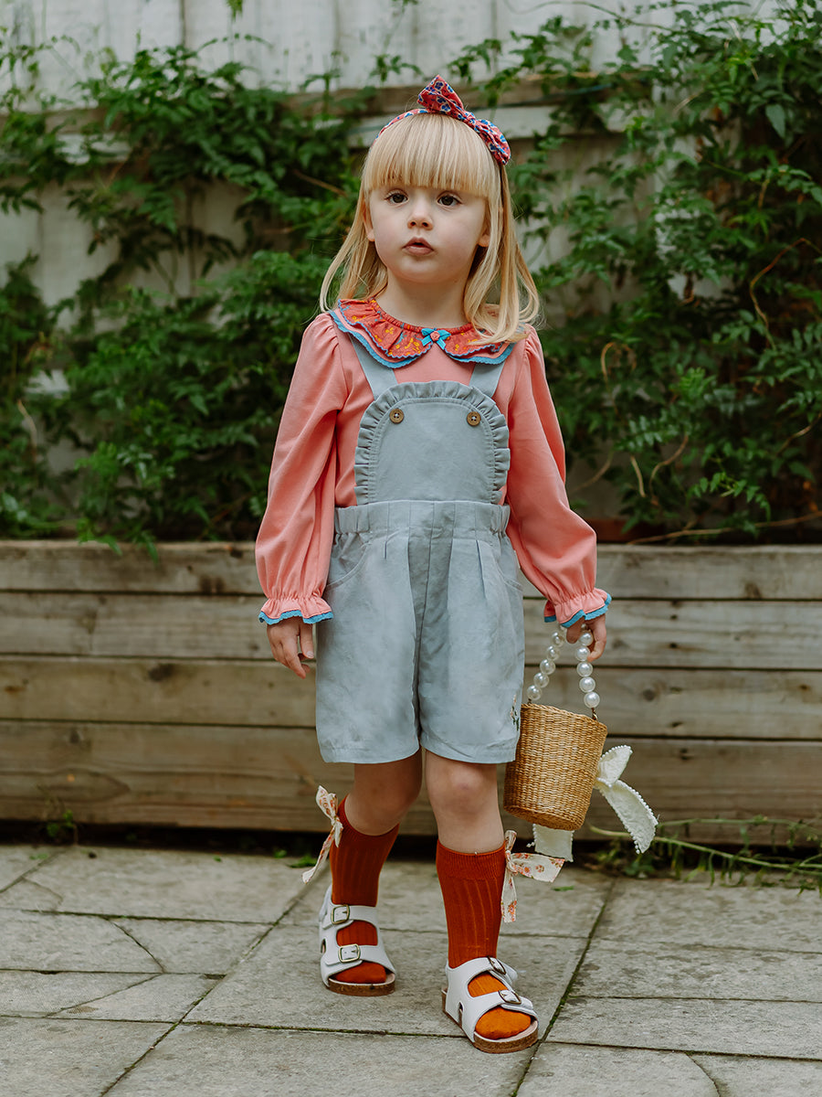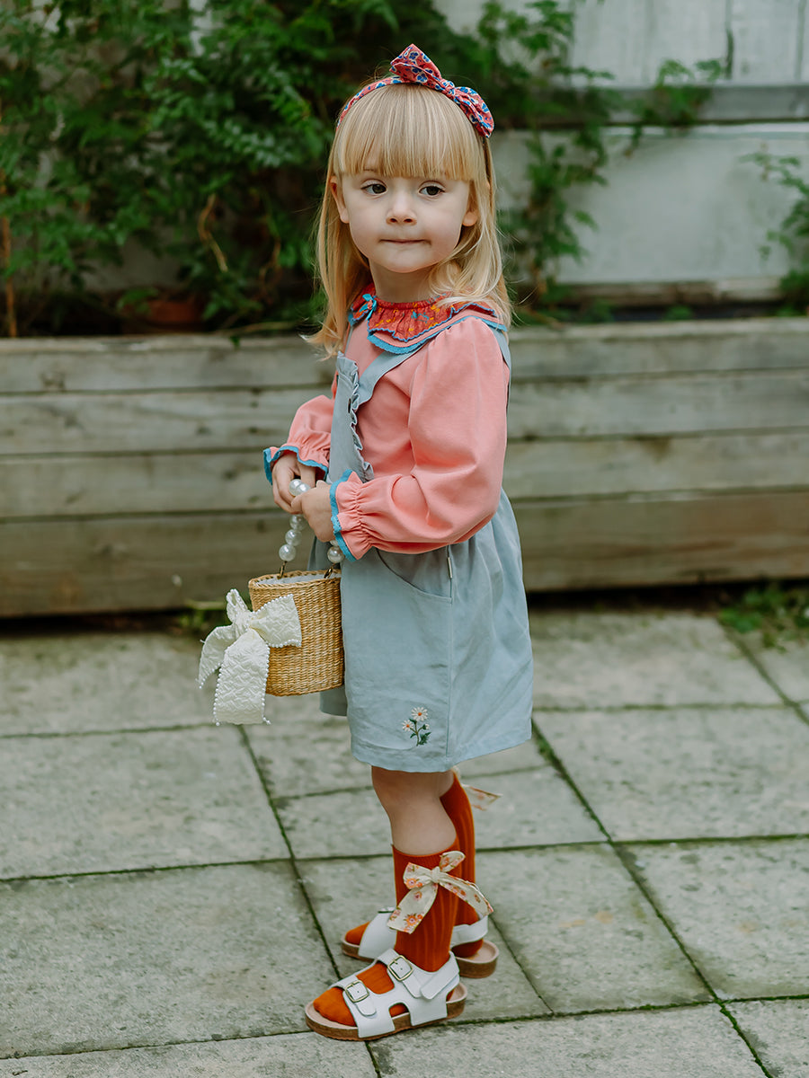 Kalmia Embroidered Corduroy Overall Dress, Khaki