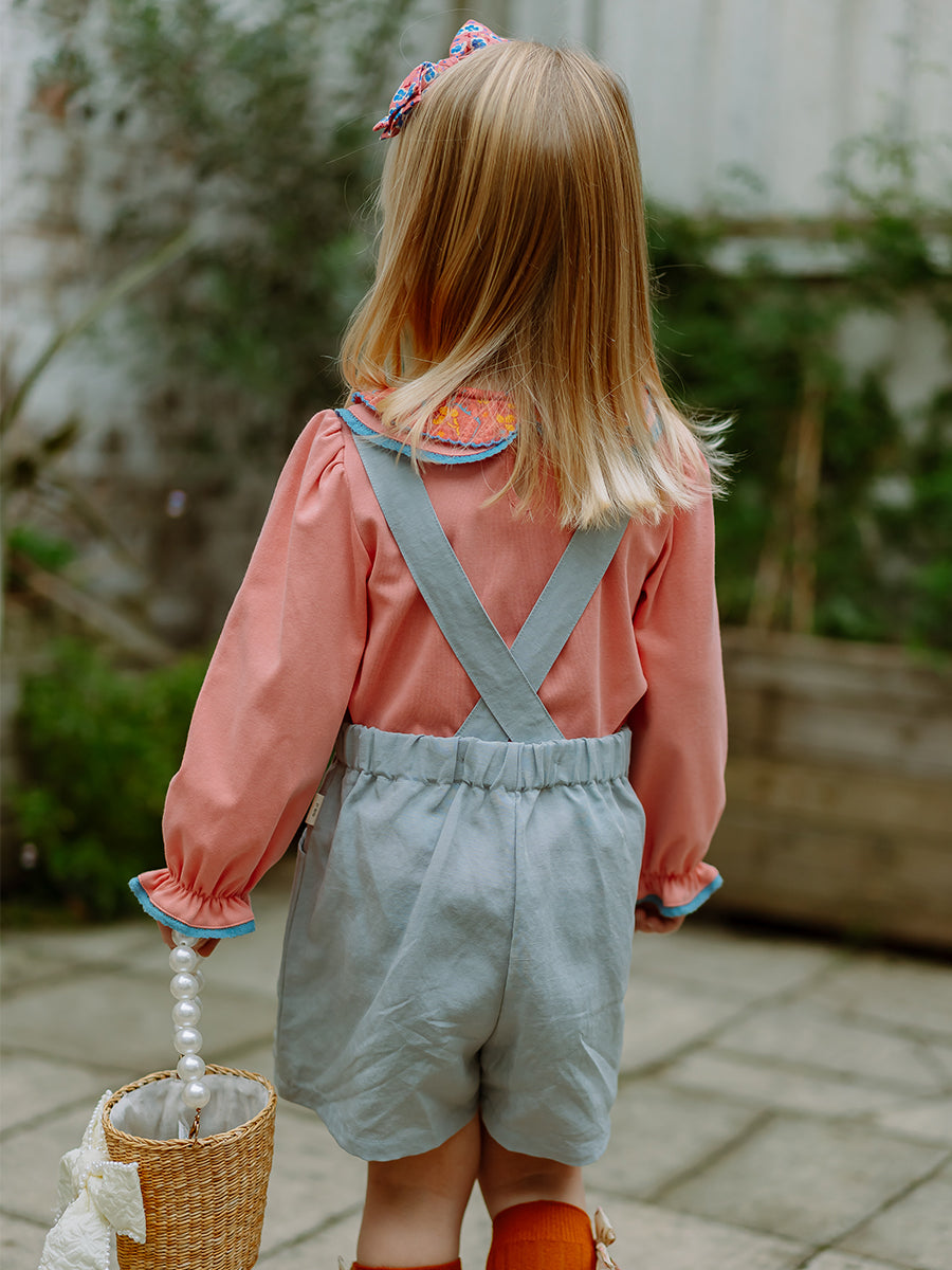 Girona Dungaree Shorts, Sky Blue
