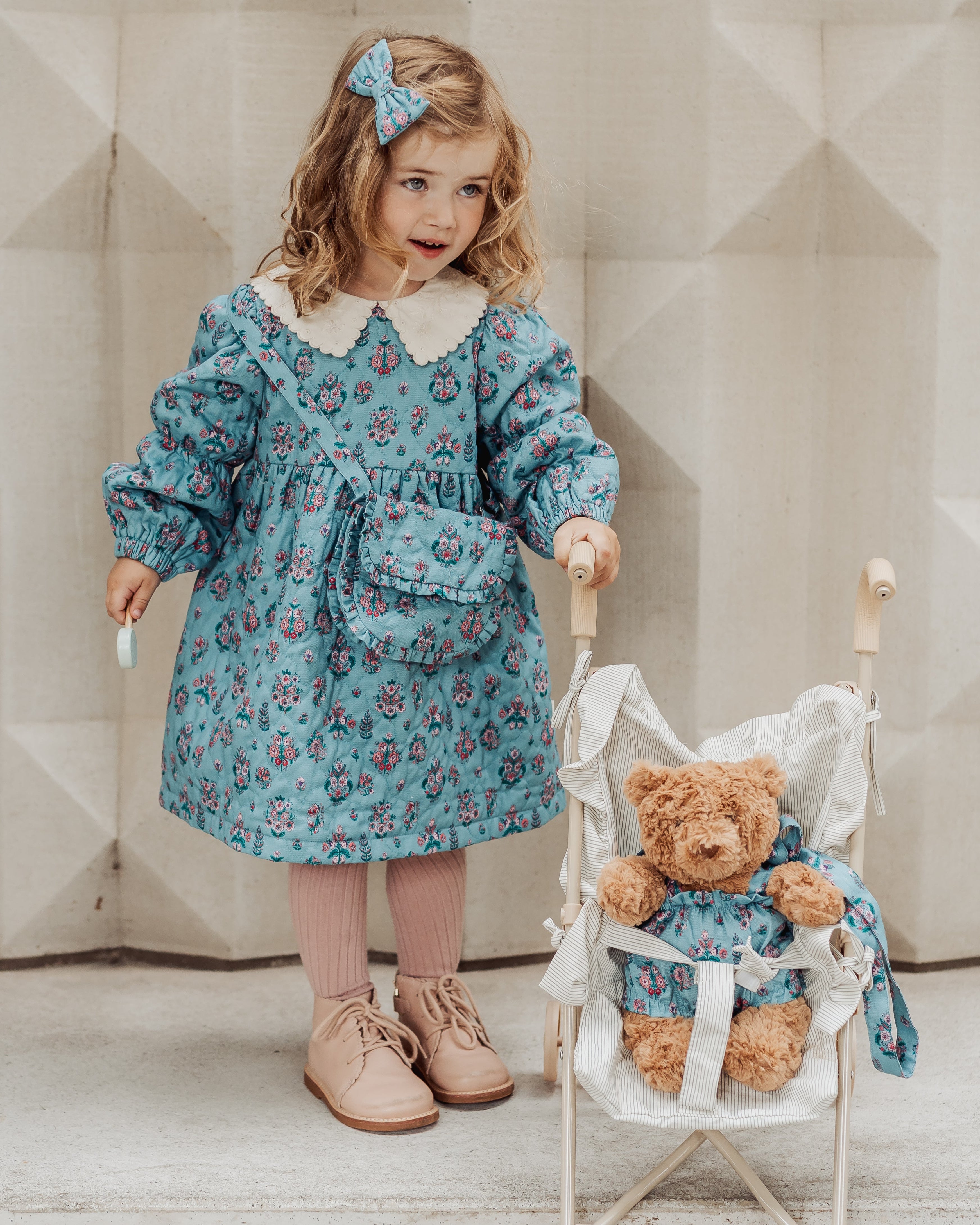 Teddy Bear Overall Shorts, Leela Botanic, Teal