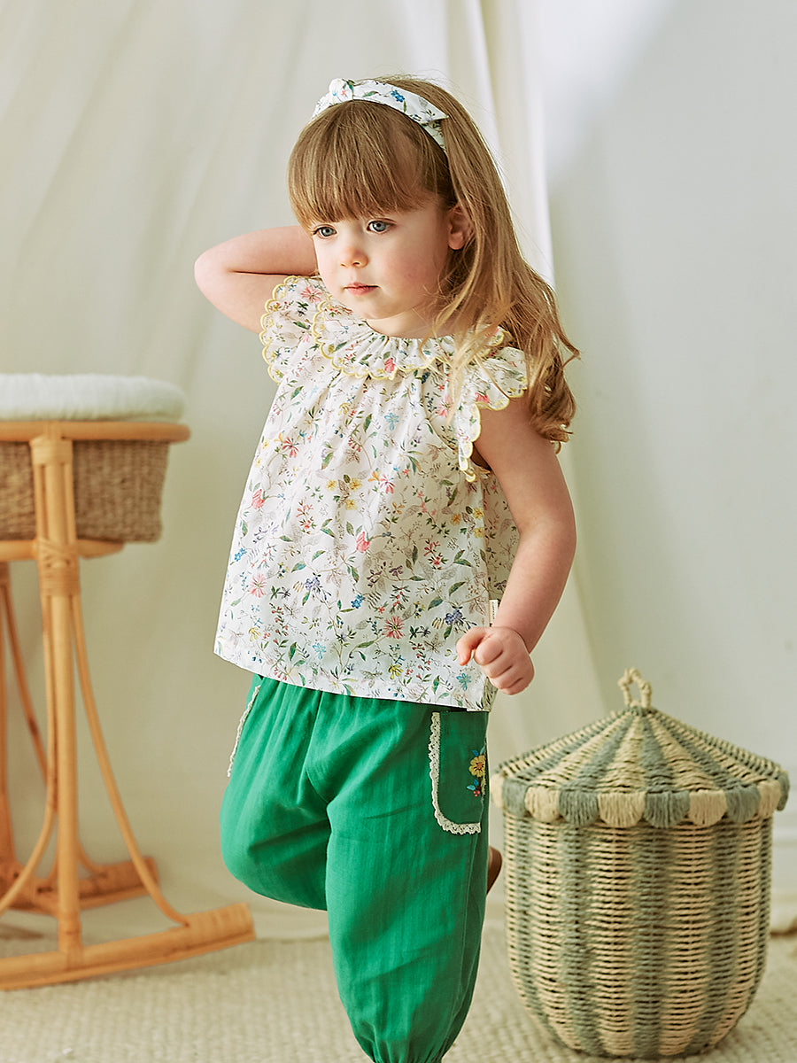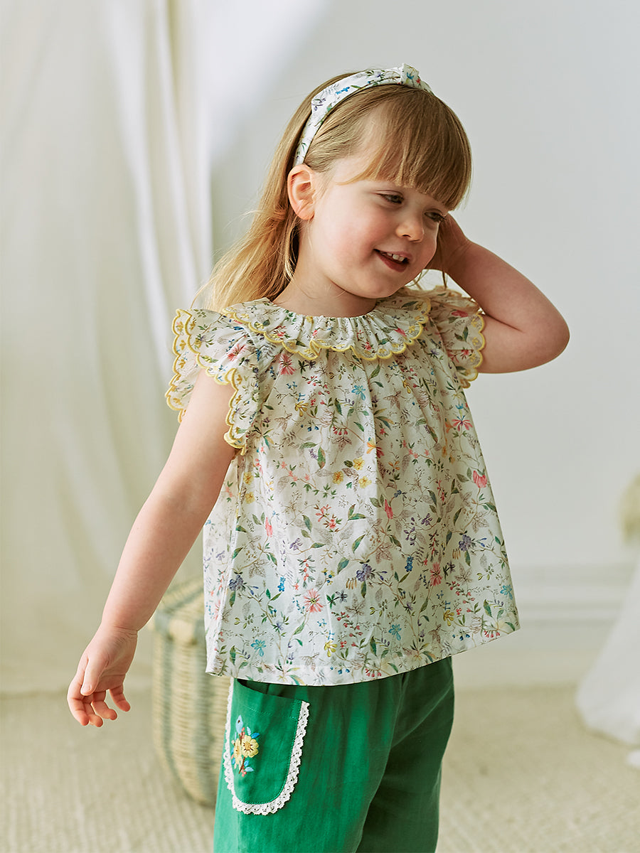 Adiya Embroidered Blouse, Mid Summer Garden Milk