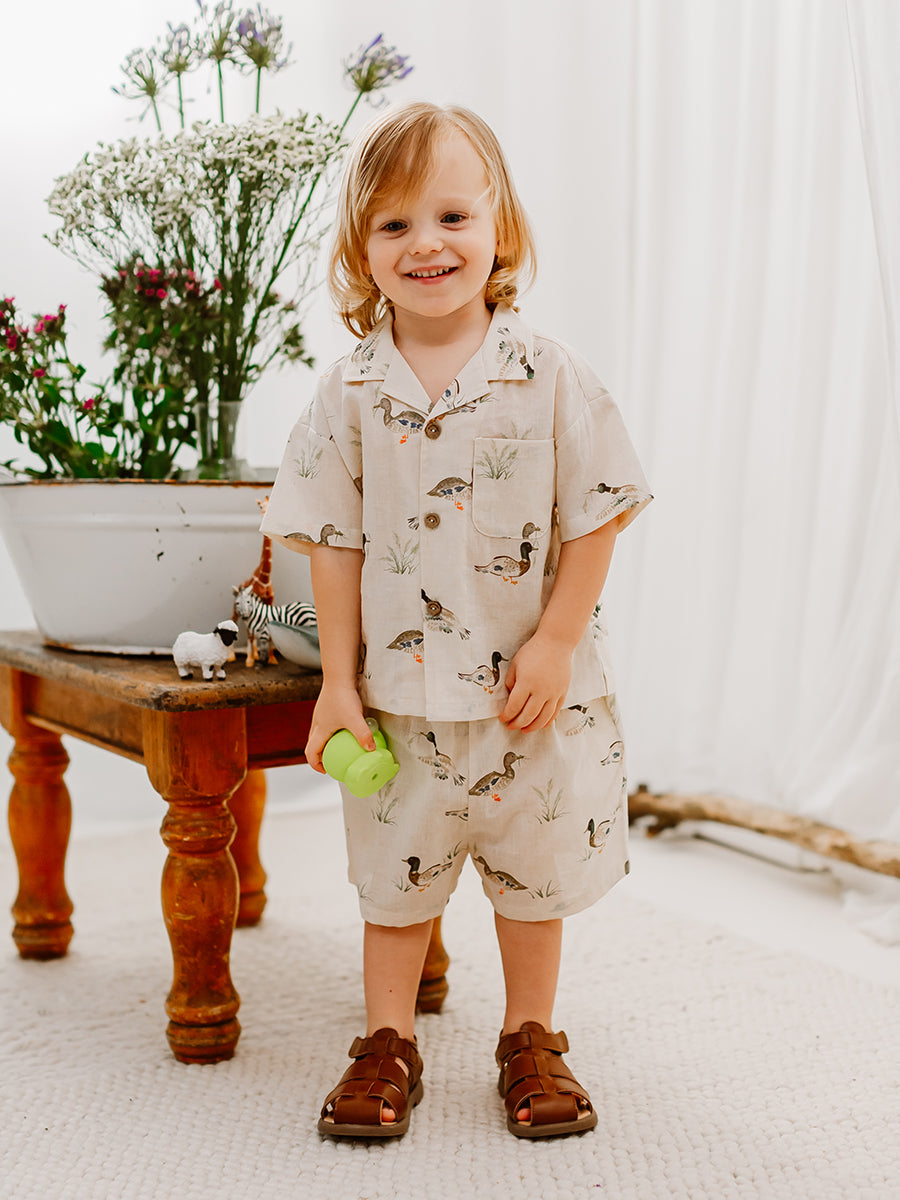 Brasov Shirt, Little Teals, Khaki