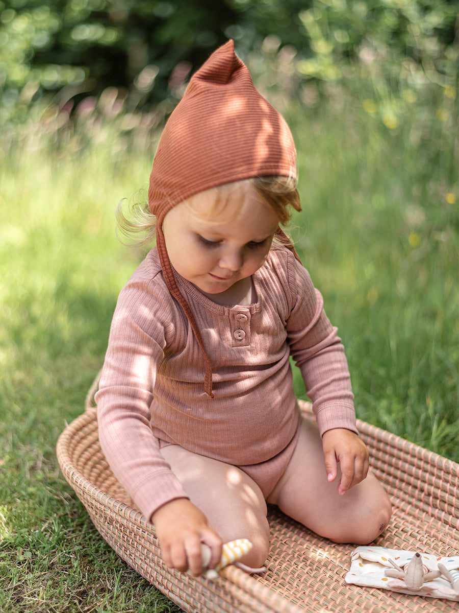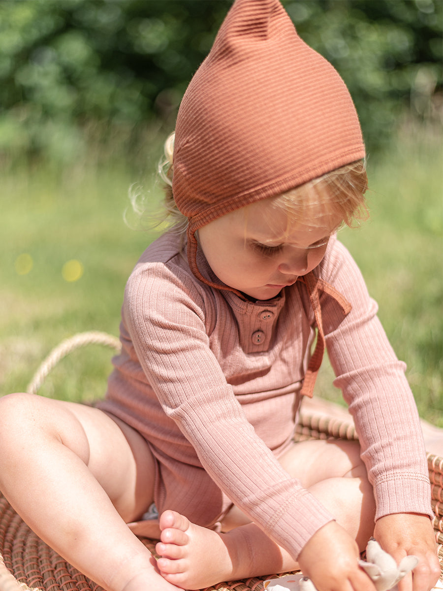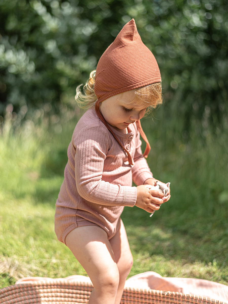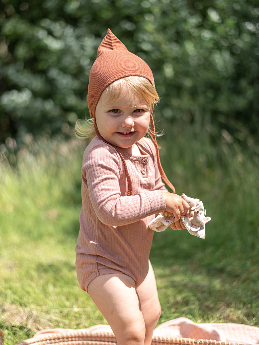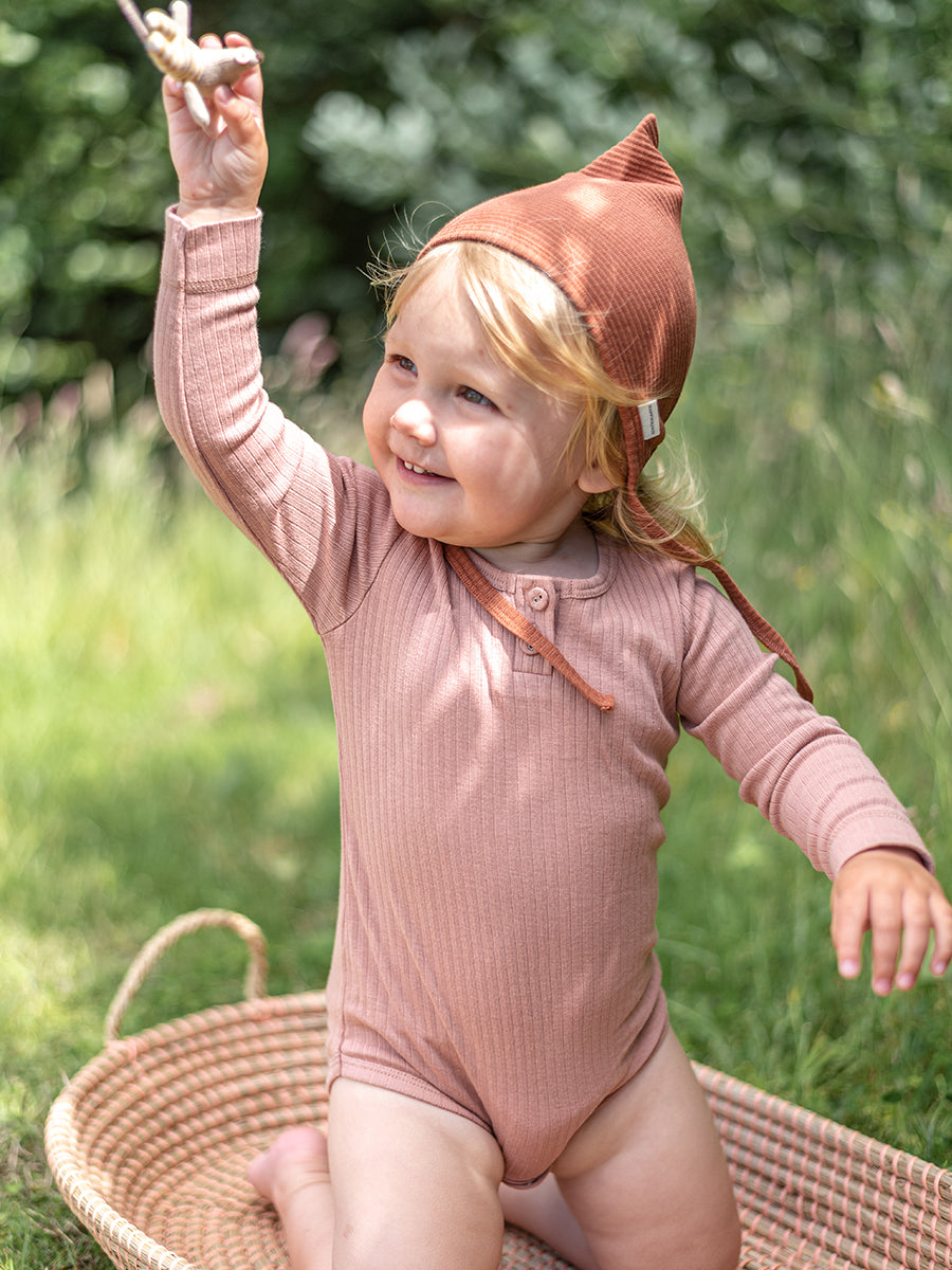Organic Essential Long-Sleeve Bodysuit, Peach