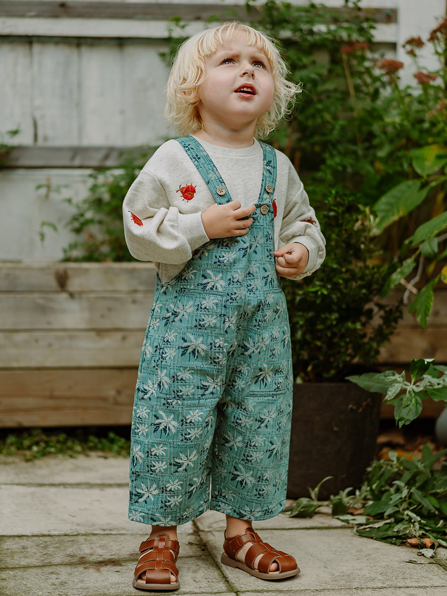Teddy Bear Overall Shorts, Leela Botanic, Teal