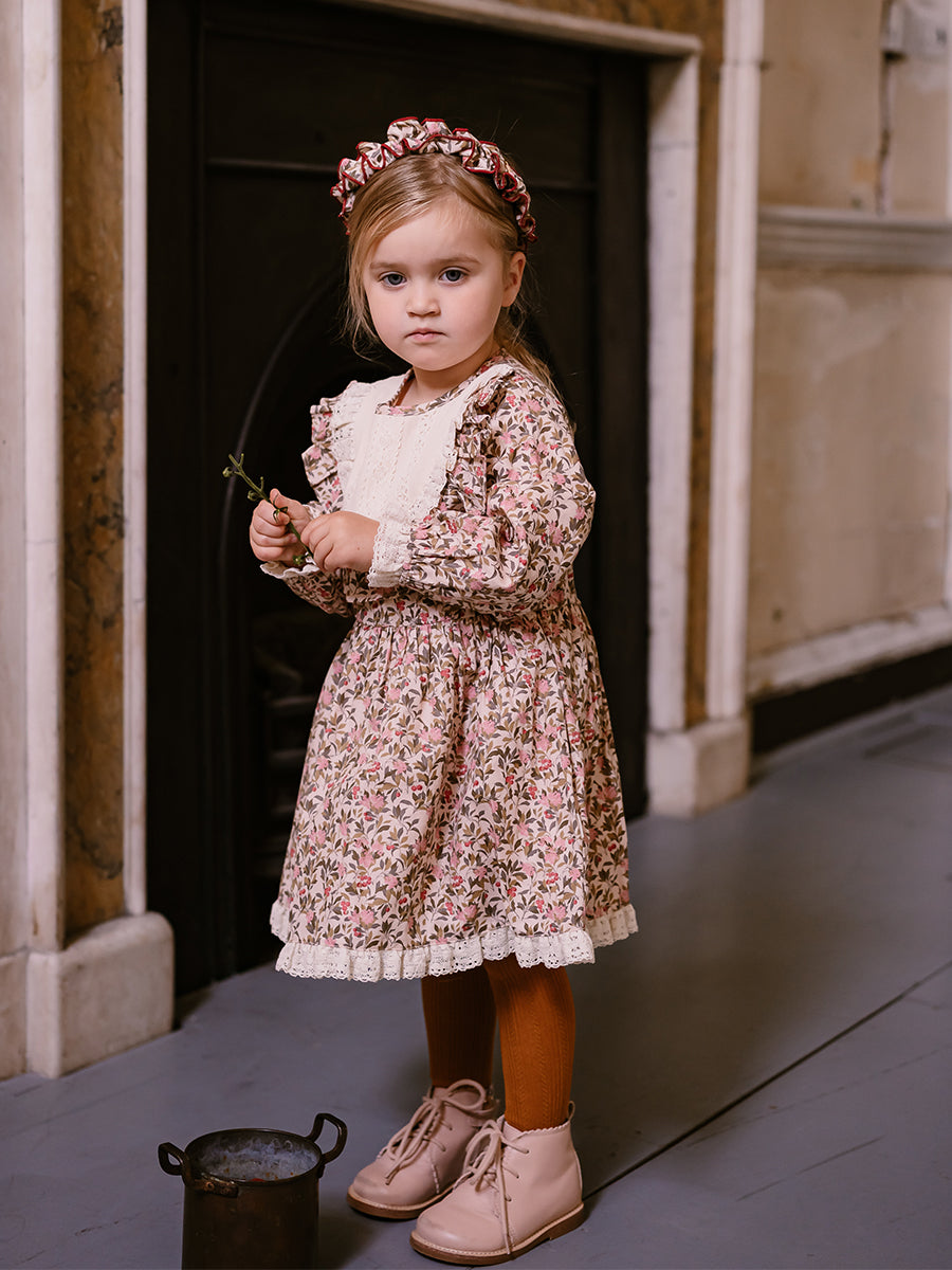 Laila Embroidered Dress, Strawberry Flower Field, Blush